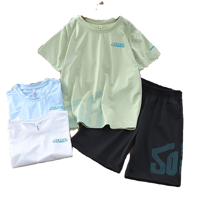 男童冰丝速干衣套装儿童夏装短裤2025新款中大童男孩篮球运动服帅