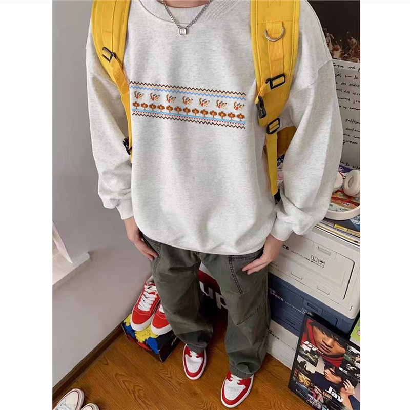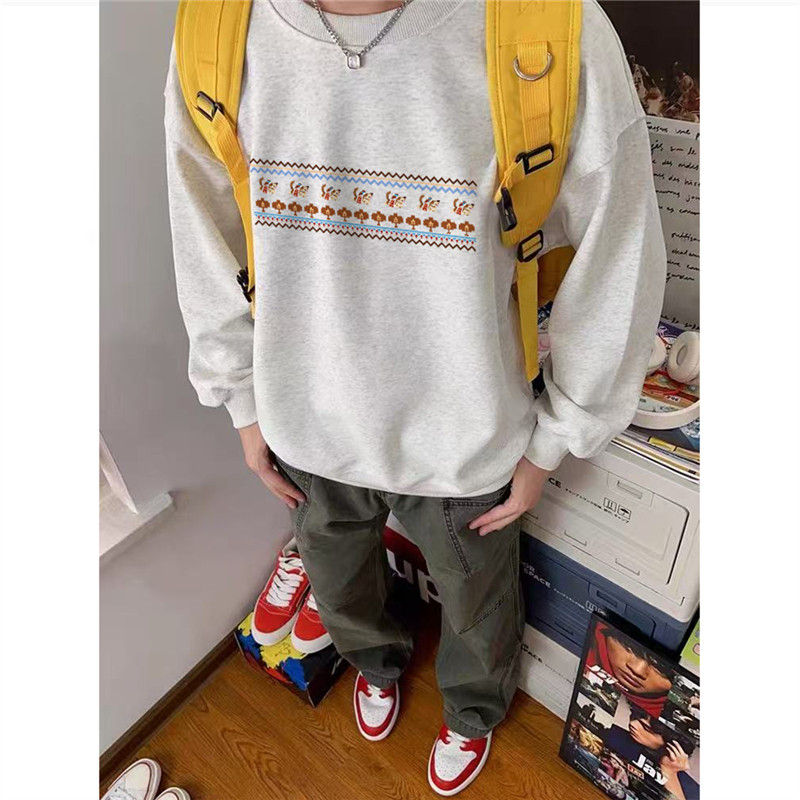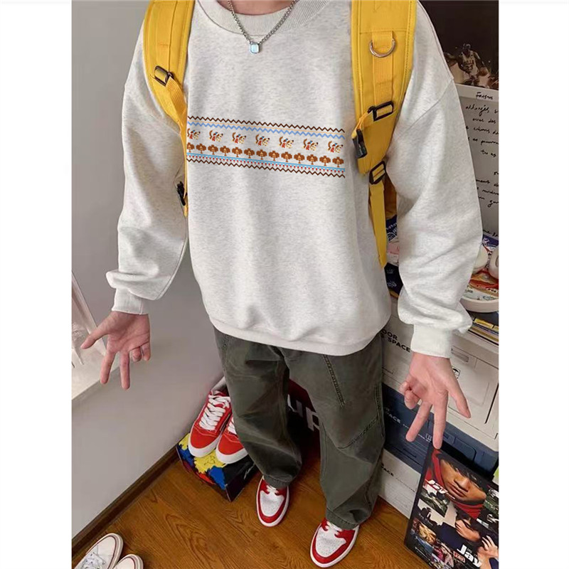 重磅纯棉美式潮流设计感无帽卫衣男款青少年宽松加绒加厚秋冬上衣