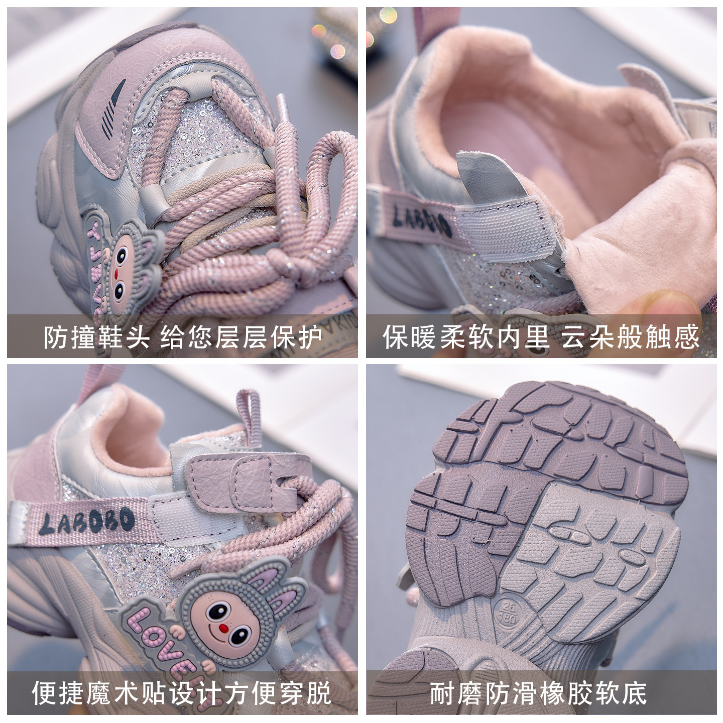 女童鞋子儿童运动鞋2025冬季小女孩轻便老爹鞋软底加绒防滑休闲鞋