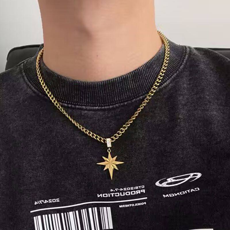 黄金色钛钢项链男款2025新款高级感轻奢小众毛衣链女胸链配饰颈链
