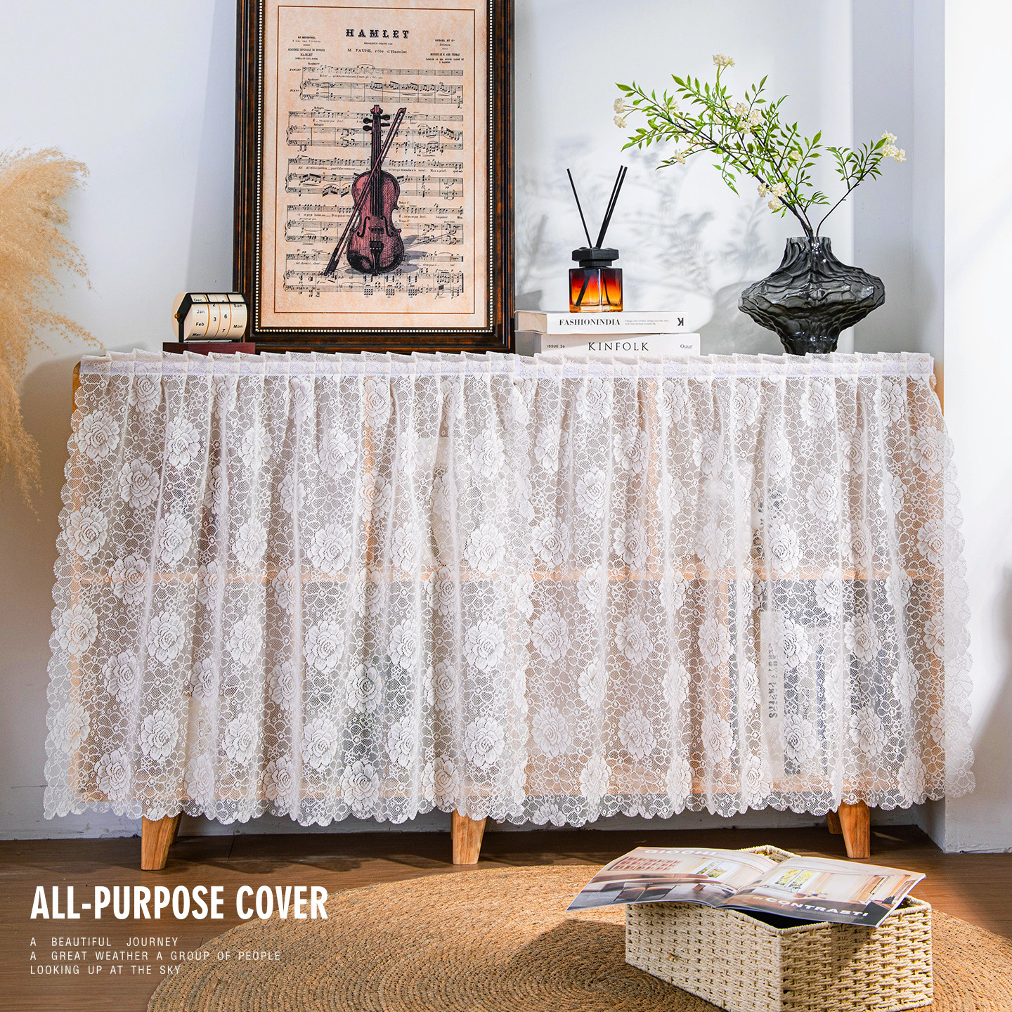 法式纱帘柜子遮挡帘免打孔安装书柜防尘帘置物架杂物遮丑帘小短帘