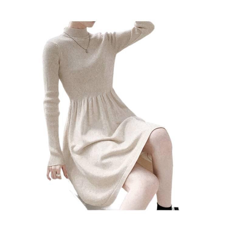冬季配大衣内搭赫本风法式毛衣裙黑色半高领打底针织连衣裙女秋冬