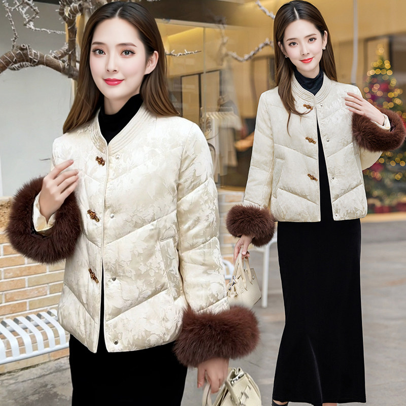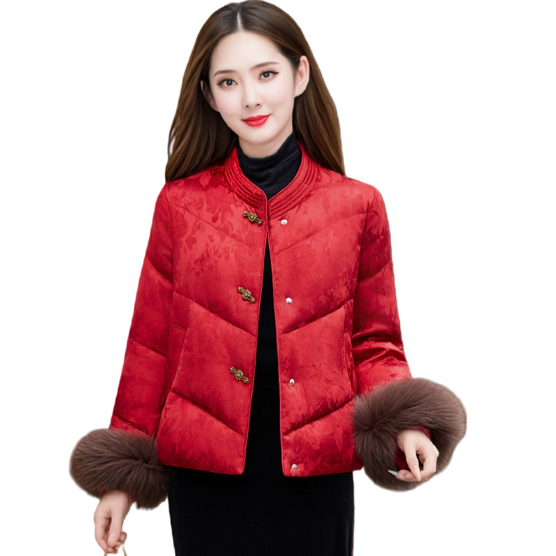 新中式国风羽绒服女2026新款冬季红色立领毛领短款白鸭绒保暖外套