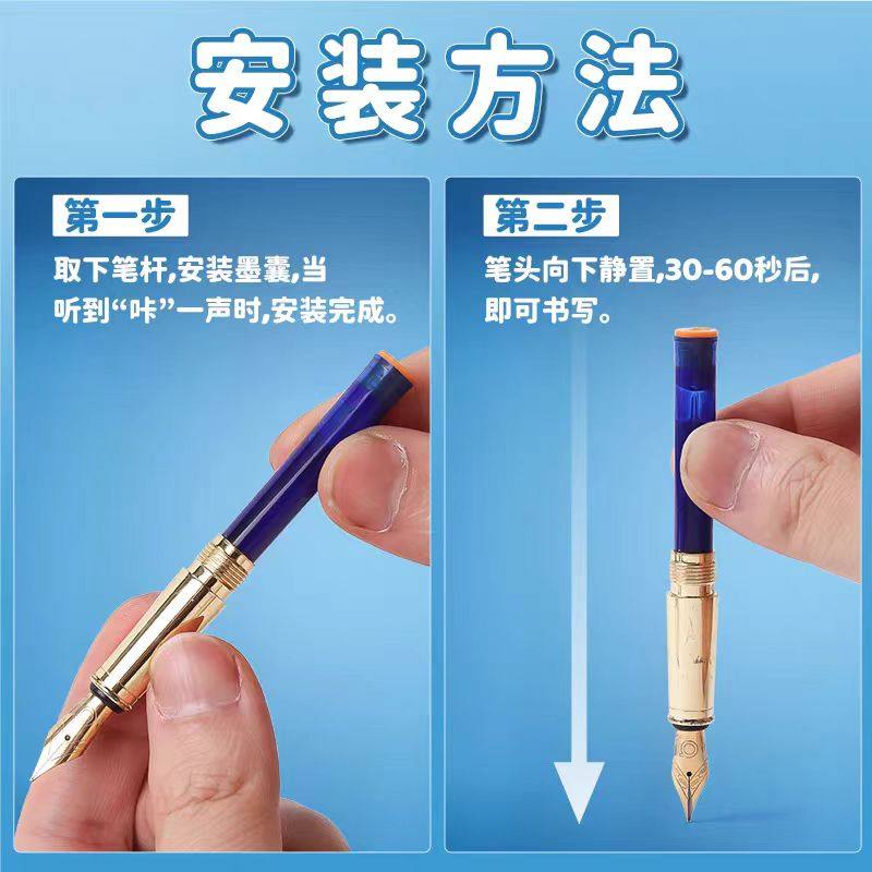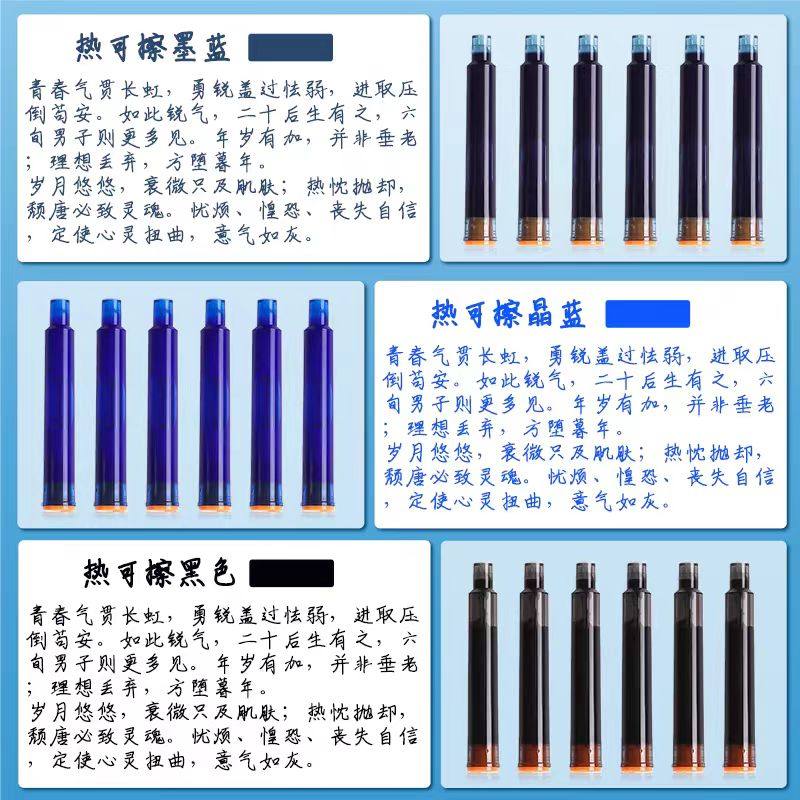 晨光热可擦墨囊钢笔替换专用墨水补充液墨胆晶蓝墨蓝黑色3.4口径