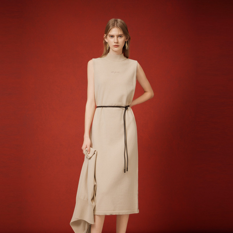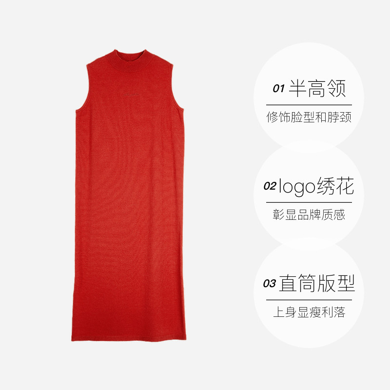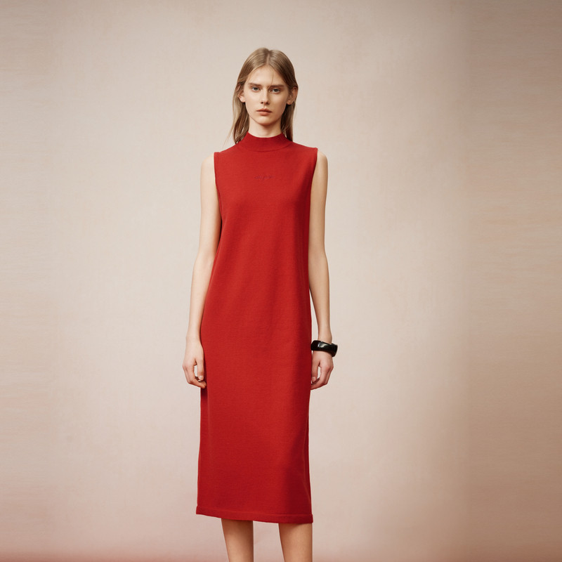 【自营】【新年系列】ELLE无袖针织连衣裙女2026春新款修身直筒裙