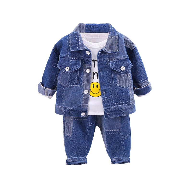 男童春秋套装1一4岁洋气宝宝牛仔外套三件套2022年新款婴儿衣服潮