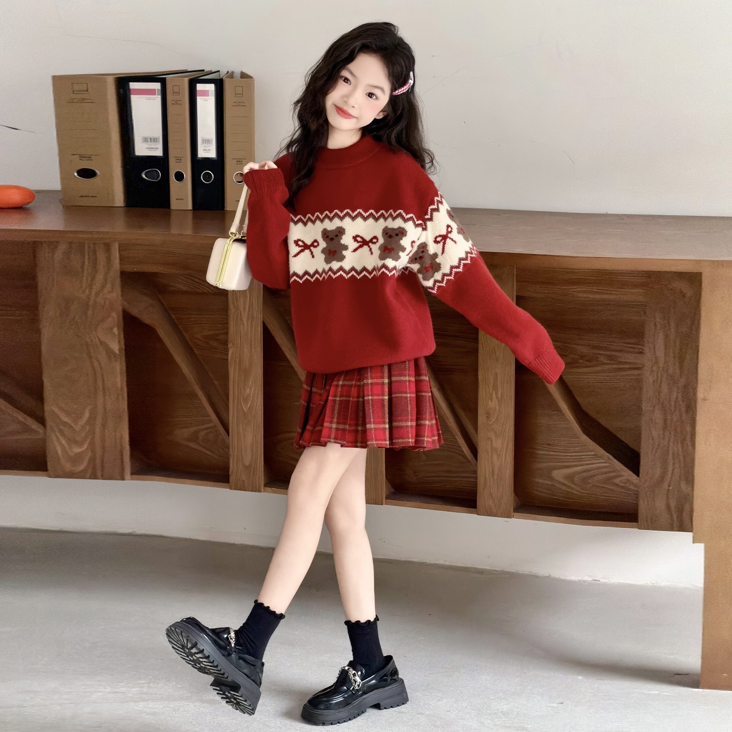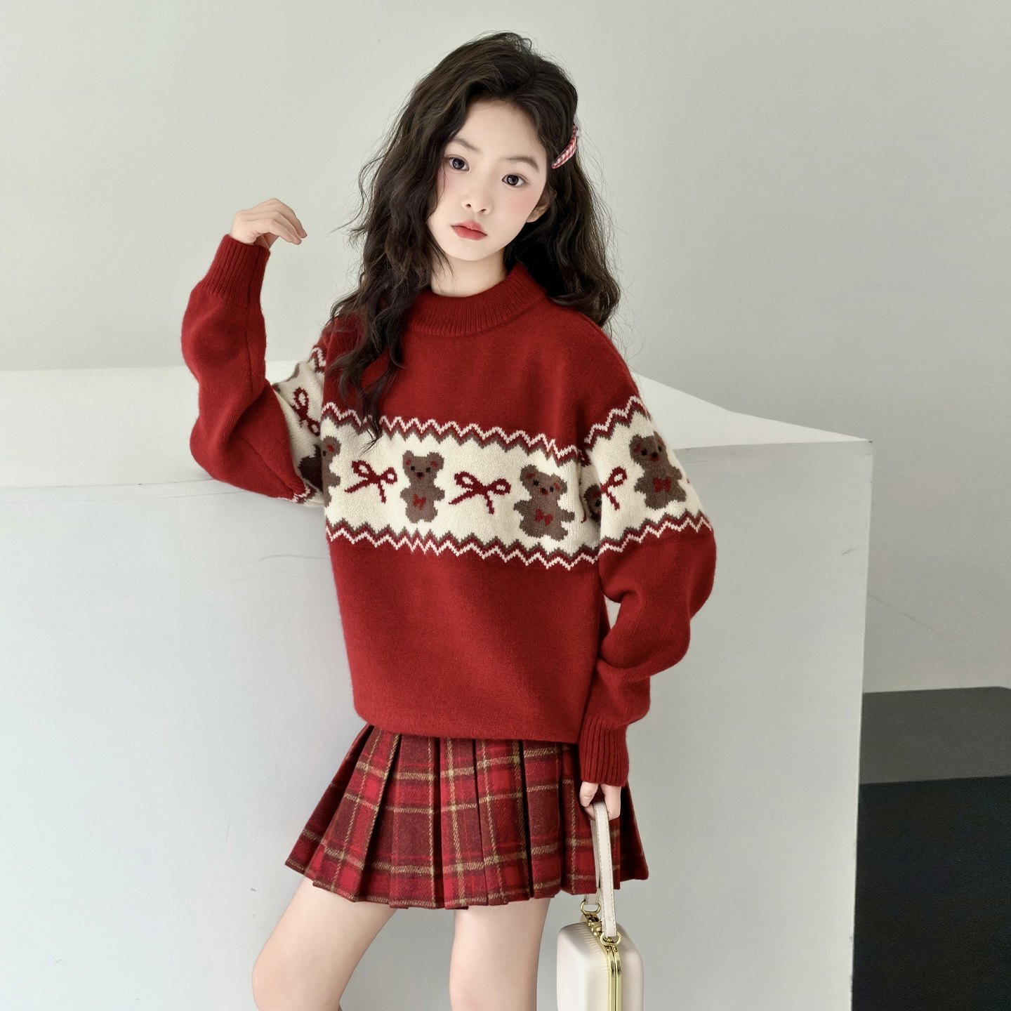 儿童红色毛衣冬款加厚2026新款女童装过年女童内搭新年衣服裙子