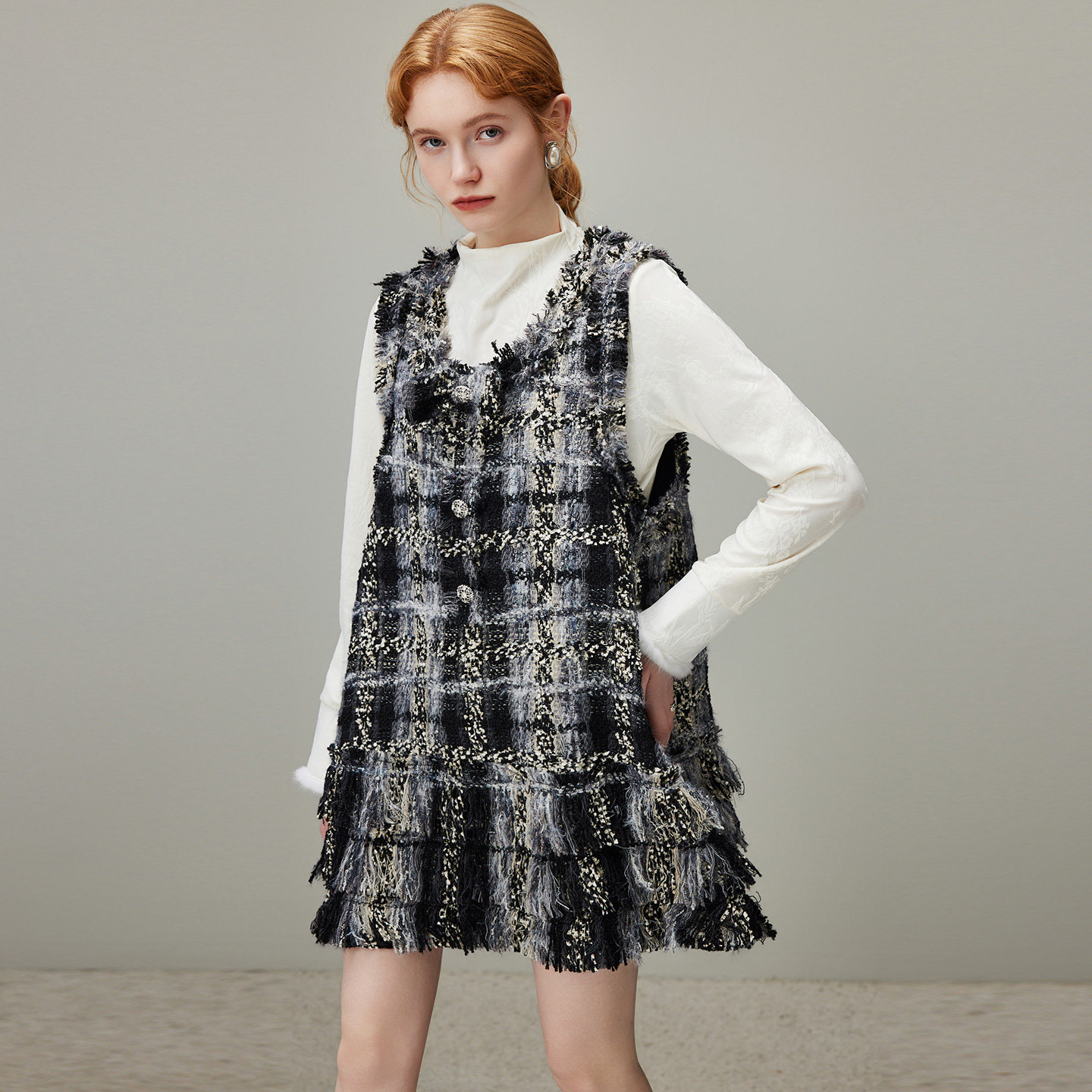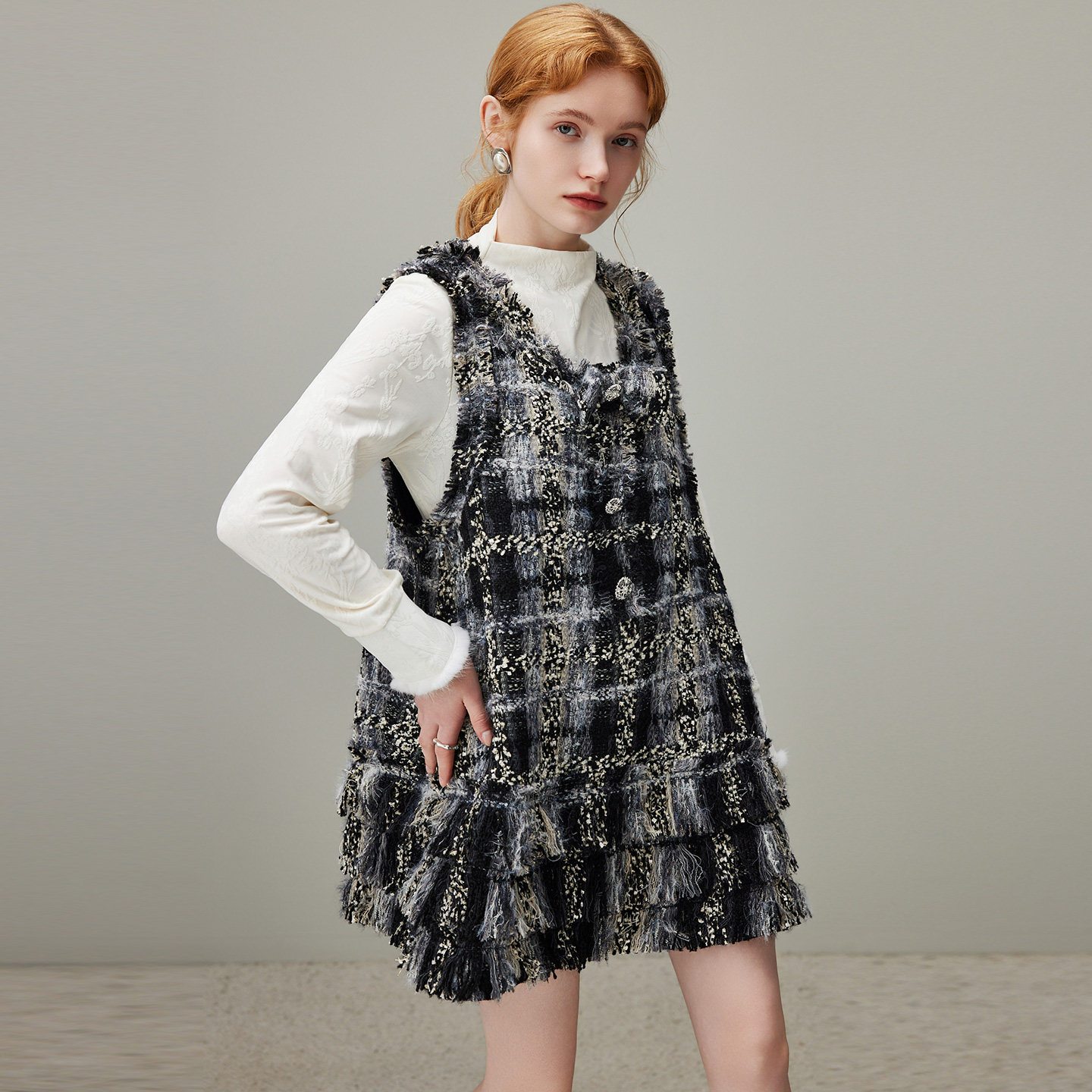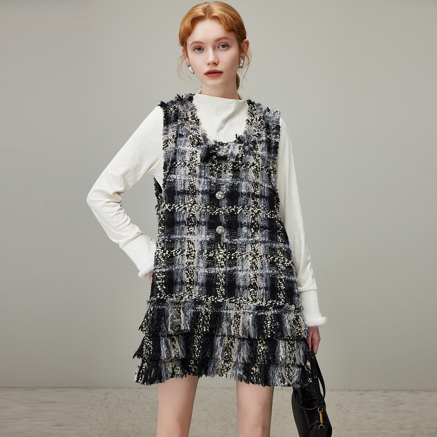 dfvc小香风名媛小个子背心裙女2025年冬季新款流苏无袖连衣裙短裙