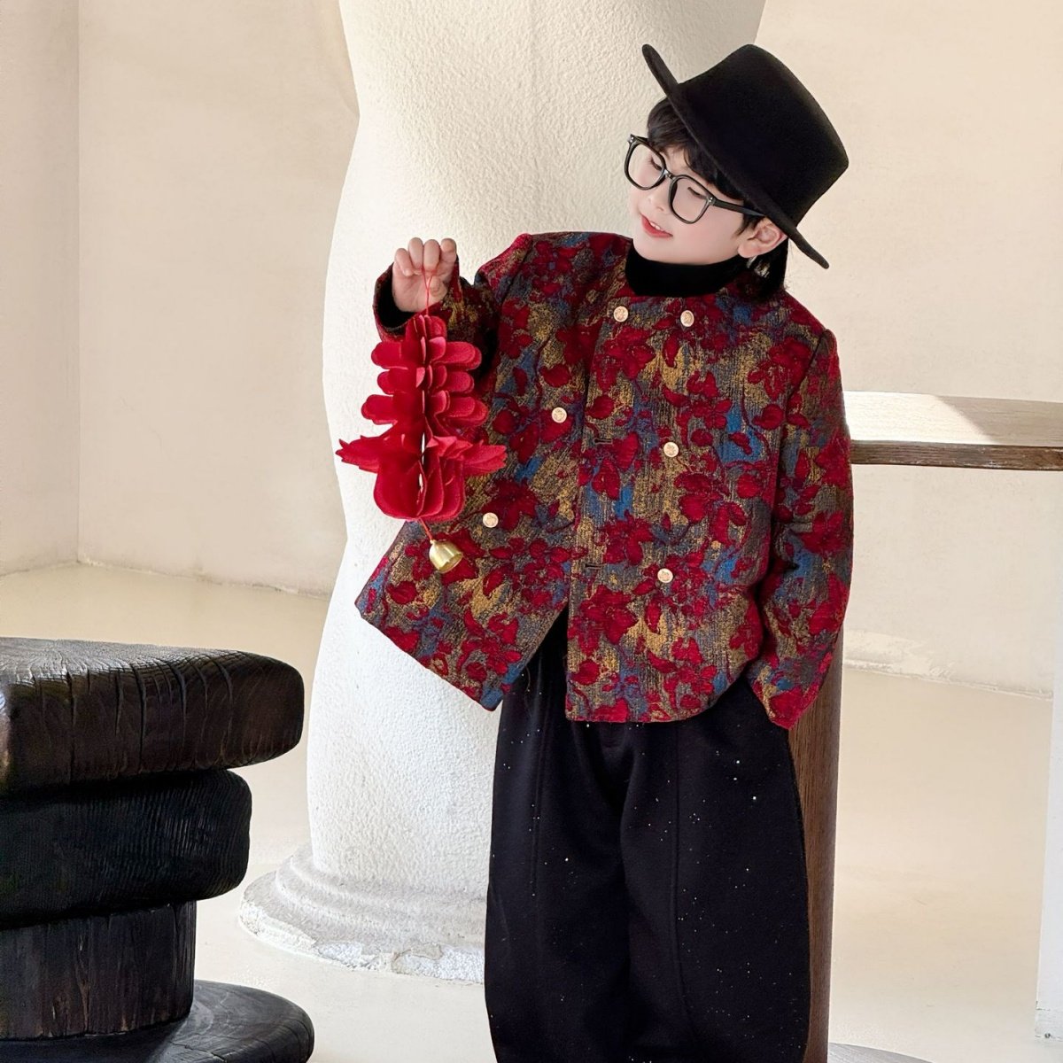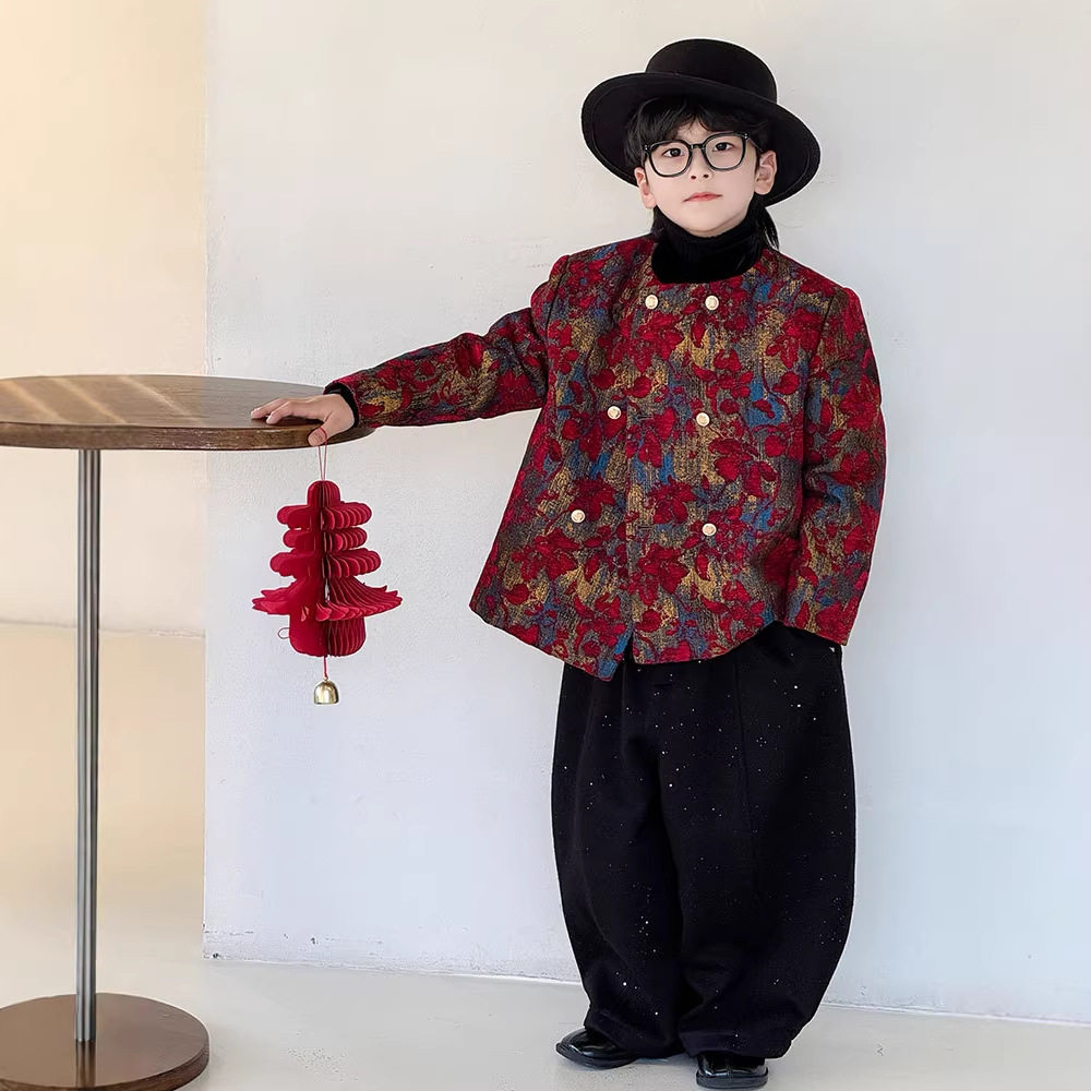 儿童拜冬年服喜庆风过年衣服男童中式套装男宝红色过年服2026新款