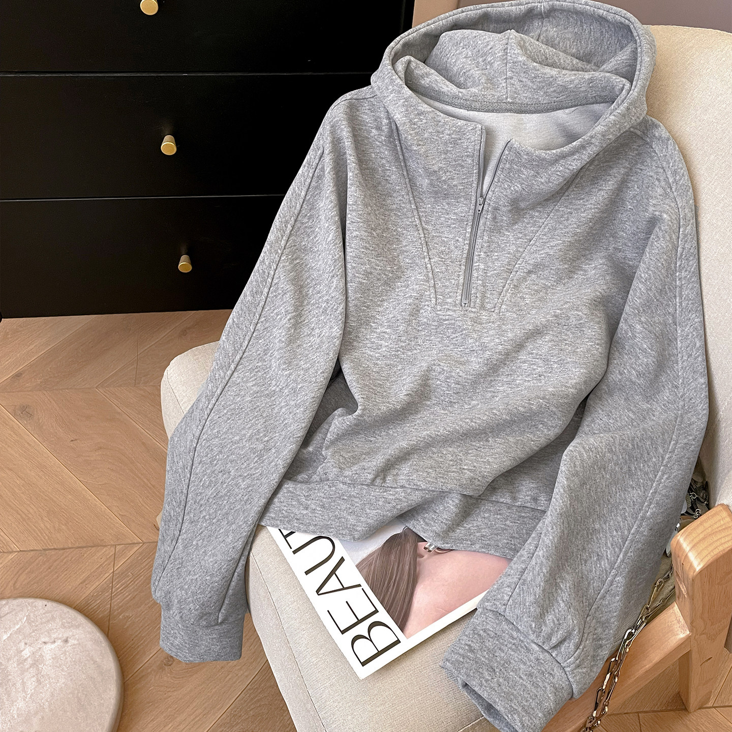 小C家 半拉链连帽卫衣女款2026新款春宽松韩系松弛感休闲运动外套