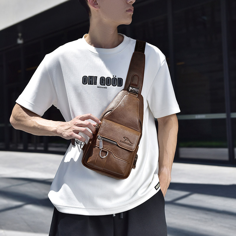 胸包男款小号防水运动真皮潮牌斜挎包骑行2025新款高级感男士背包