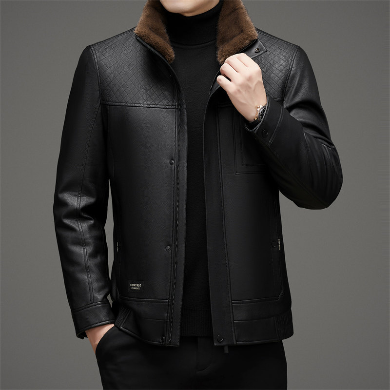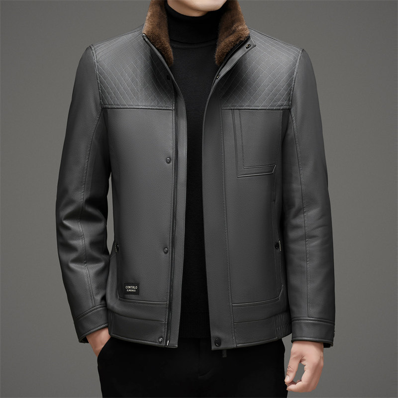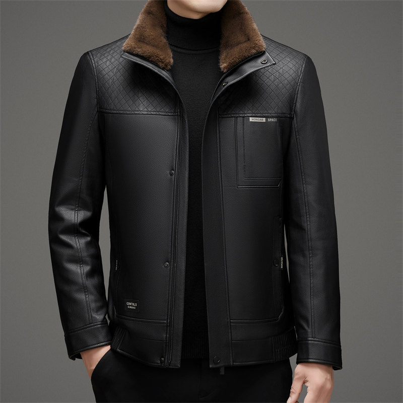 冬季海宁水貂内胆皮毛一体男士貂皮外套真皮皮衣男皮夹克加绒加厚