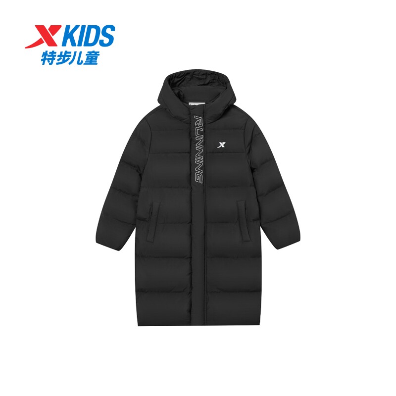 特步童装女童中长款羽绒服儿童保暖外套2026秋冬新款大童防寒衣服