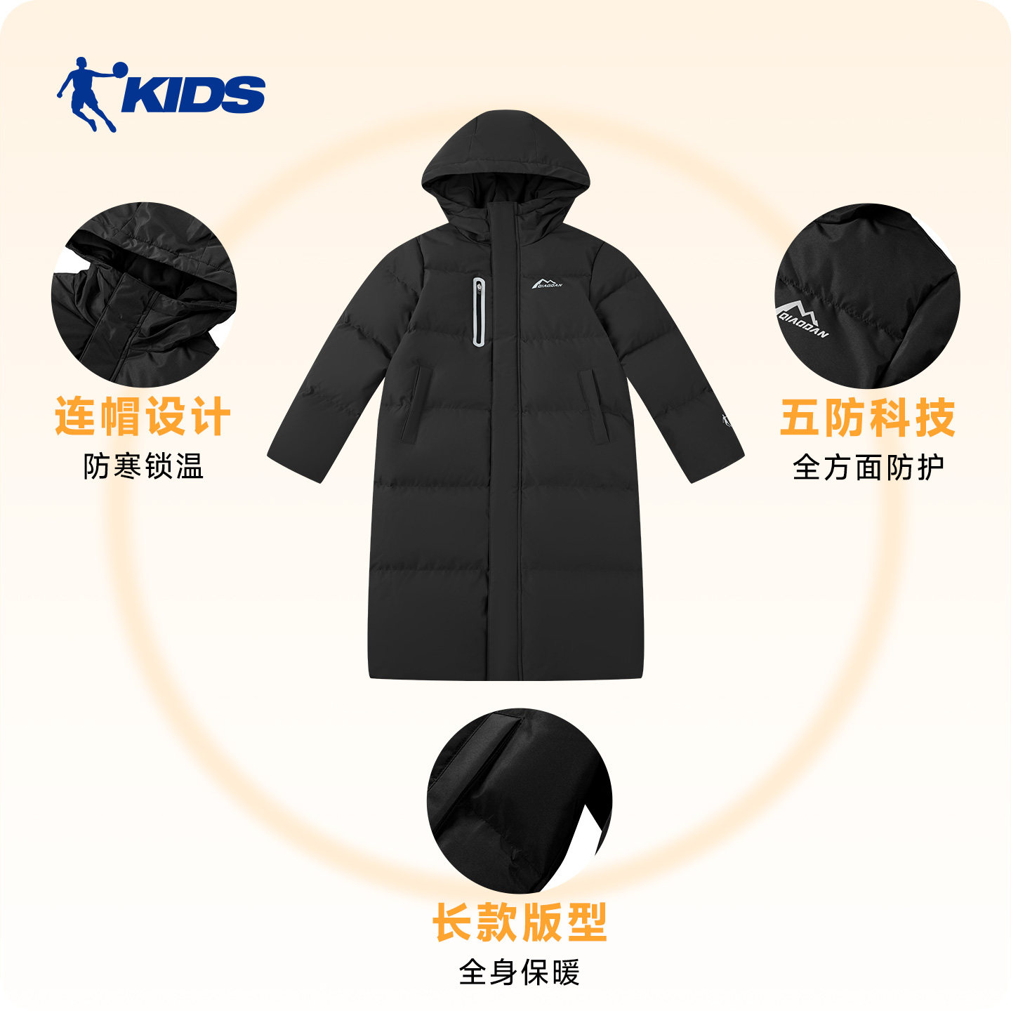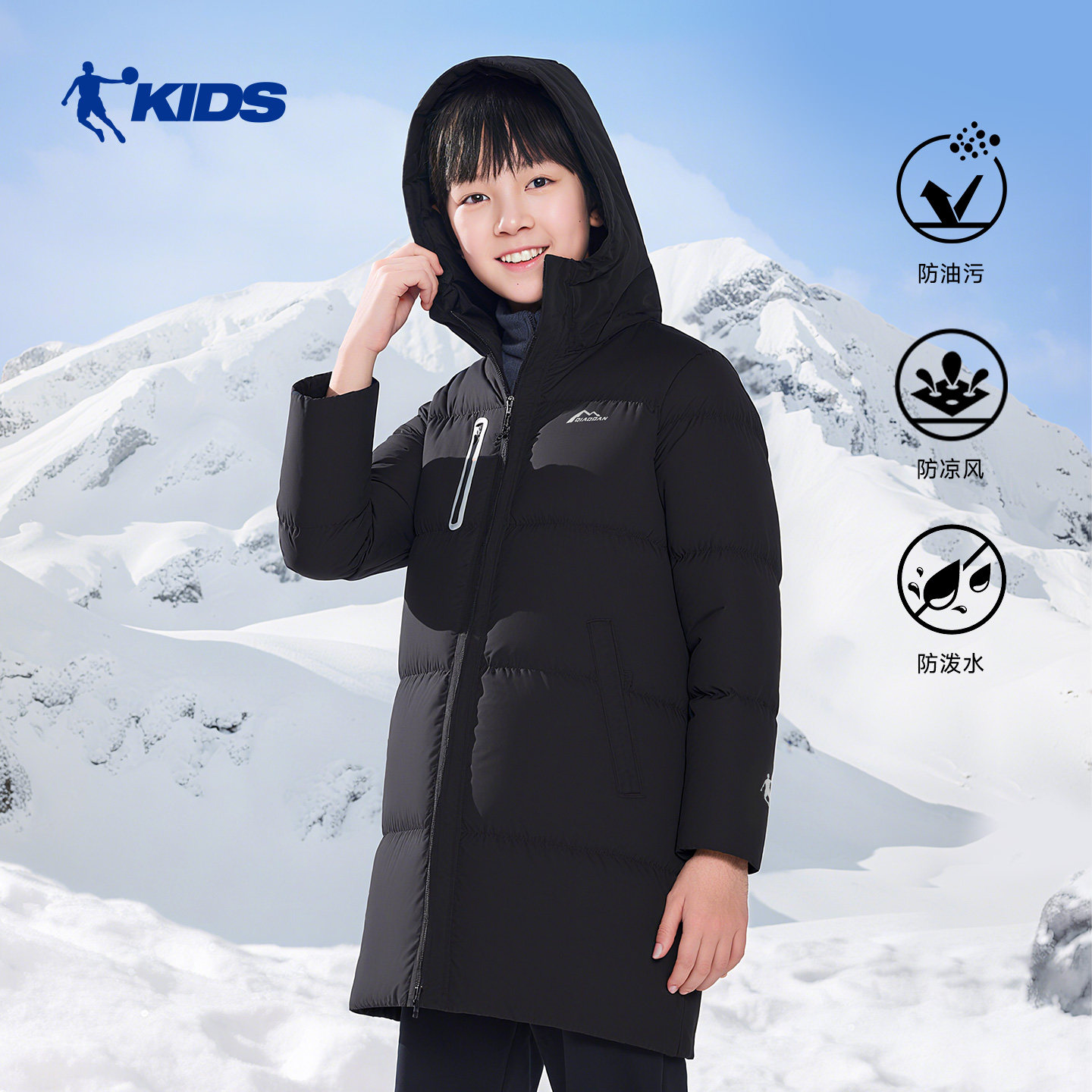 乔丹儿童男童中长款羽绒服2026冬季新款男童舒适保暖五防厚外套