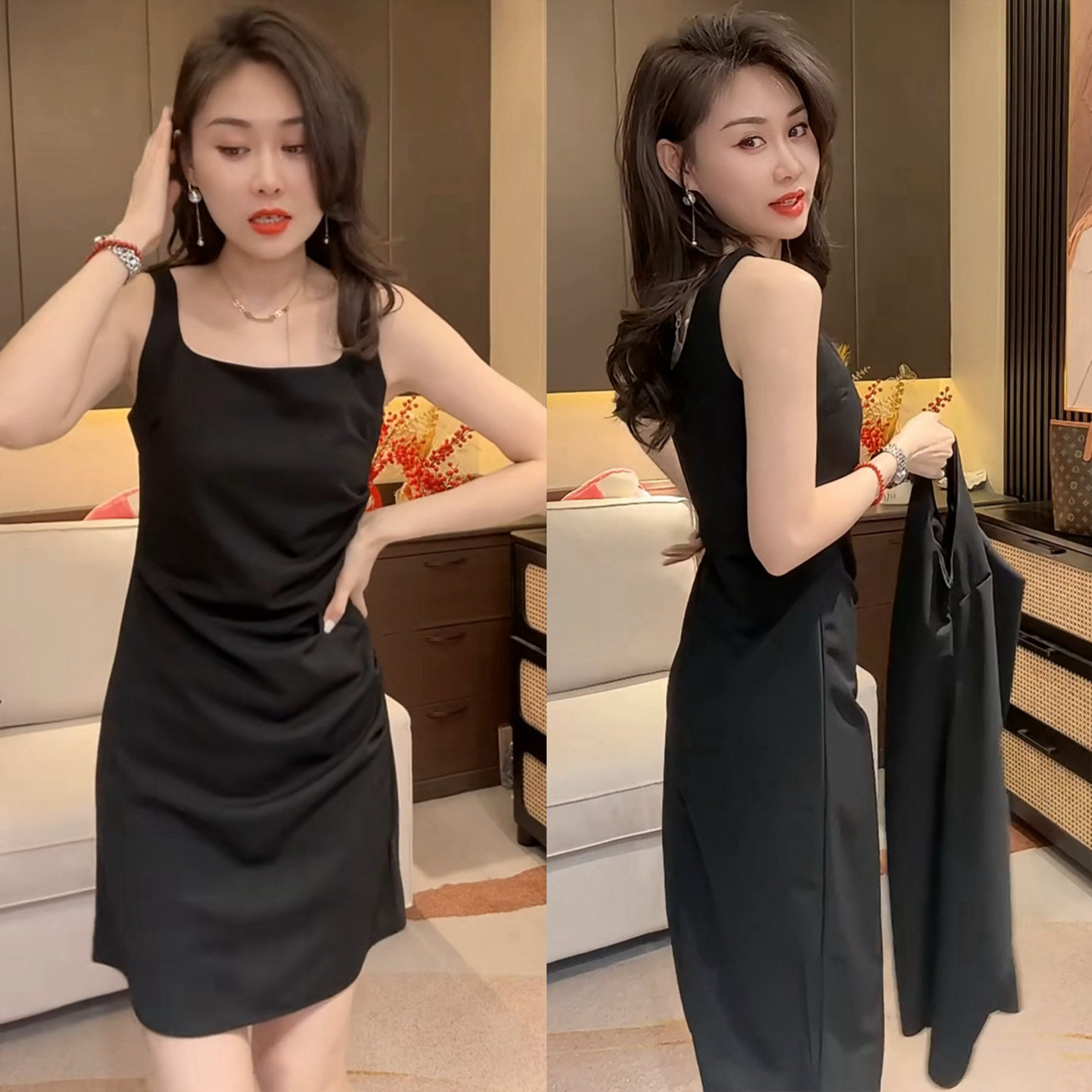 高级感吊带背心裙女夏外穿2025新款黑色打底内搭小个子长裙连衣裙