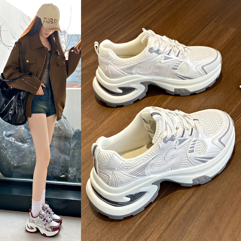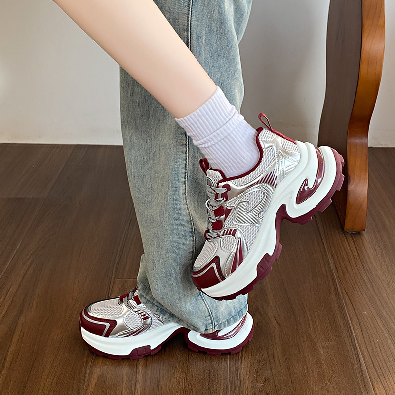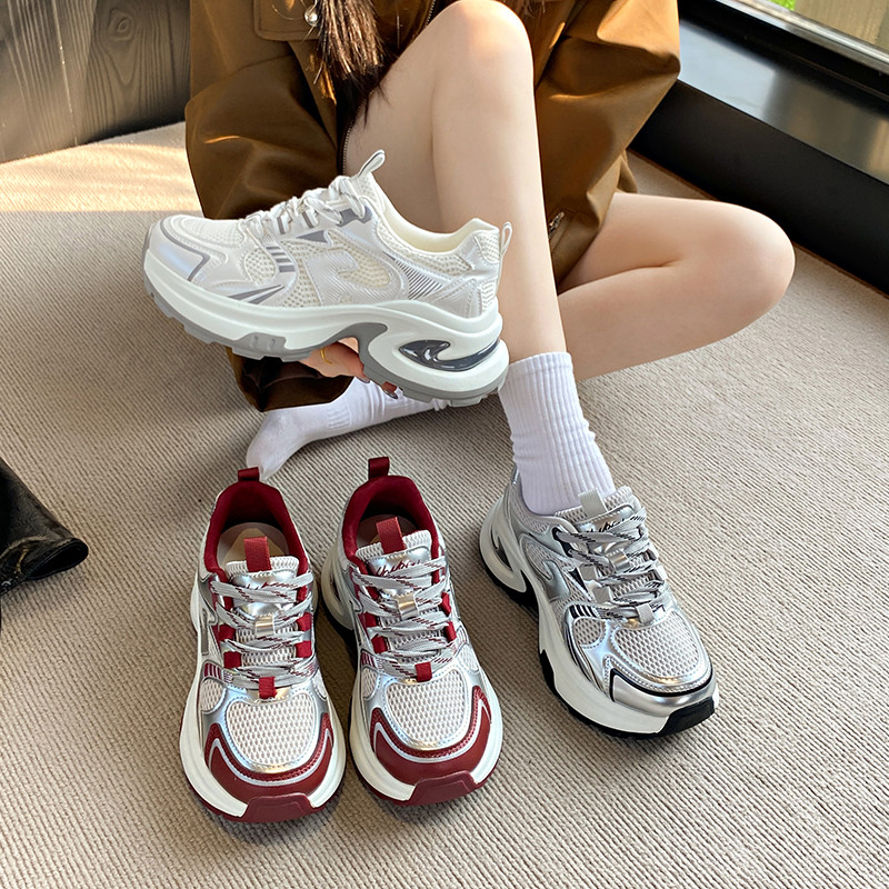 银色爆款厚底老爹鞋女2026新款春季小个子增高松糕休闲运动鞋34码