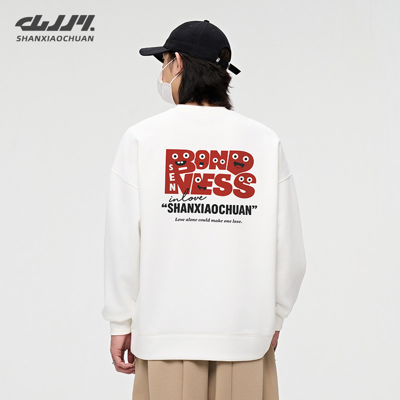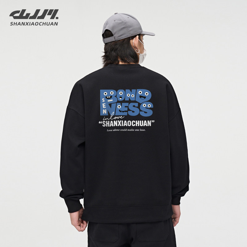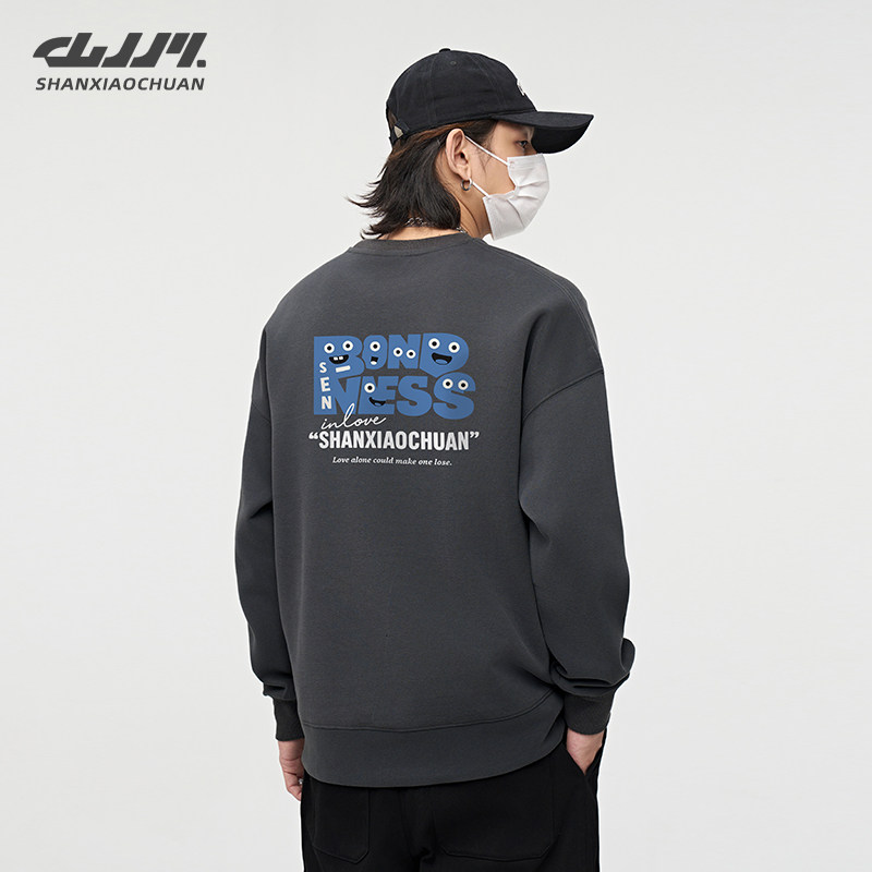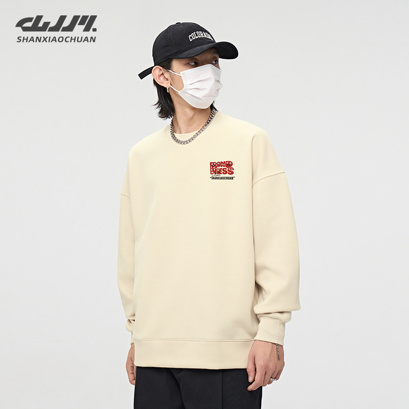山小川潮牌美式卫衣男款冬季加厚圆领男生长袖青少年加绒无帽上衣