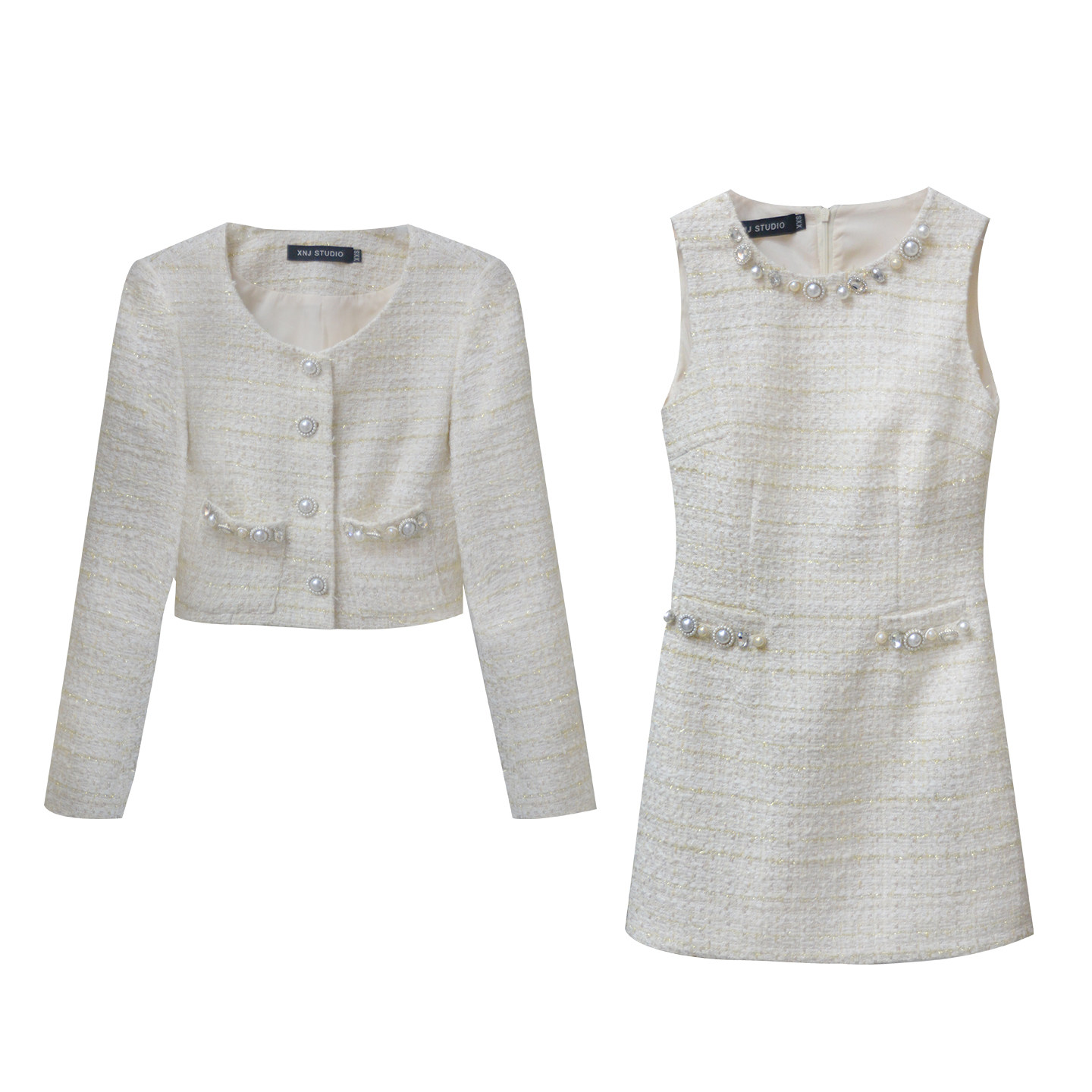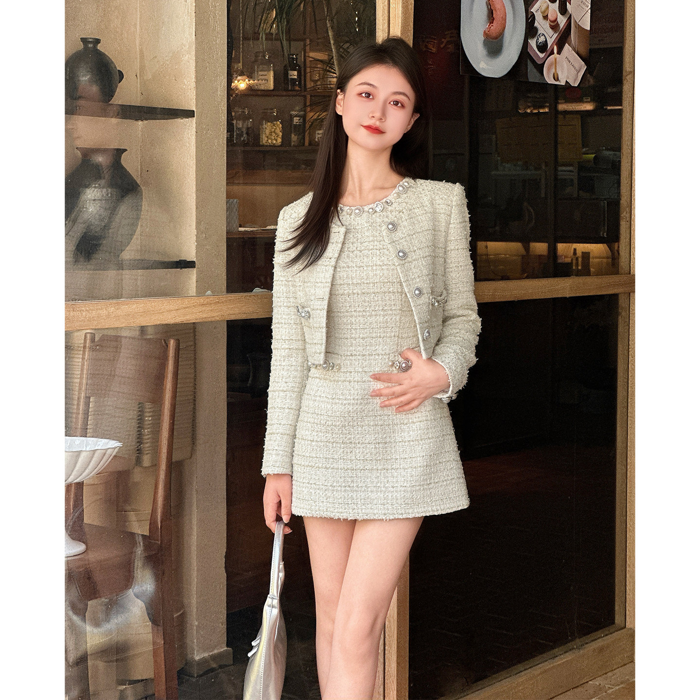【法香名媛】小娜椒小个子新款秋季气质千金风连衣裙短外套套装女