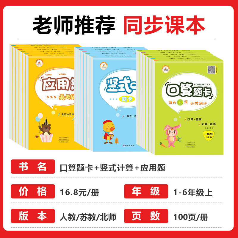一年级口算天天练人教版口算题卡二年级上册下册小学北师大版六五四年级三年级上数学应用题专项计算题强化训练竖式计算苏教版人教