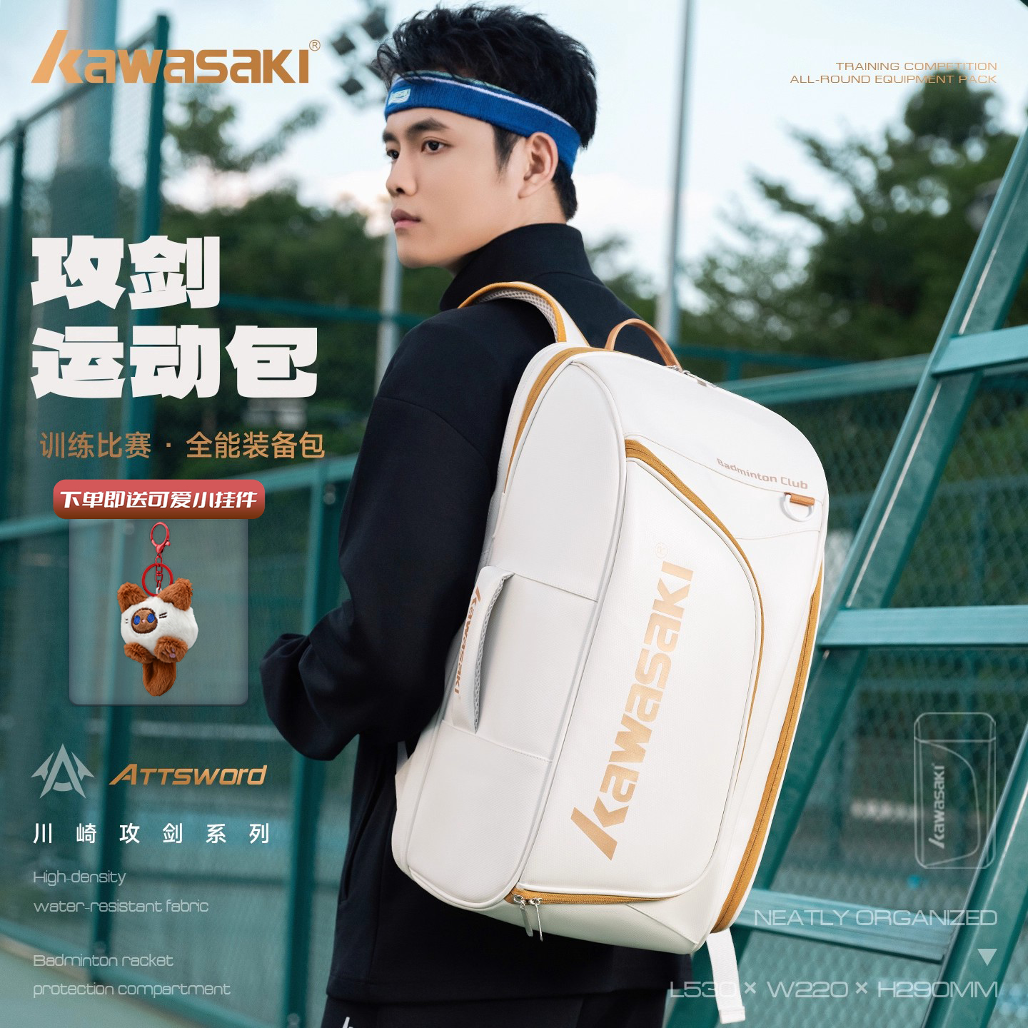 311线报网描述:川崎KAWASAKI羽毛球包双肩包