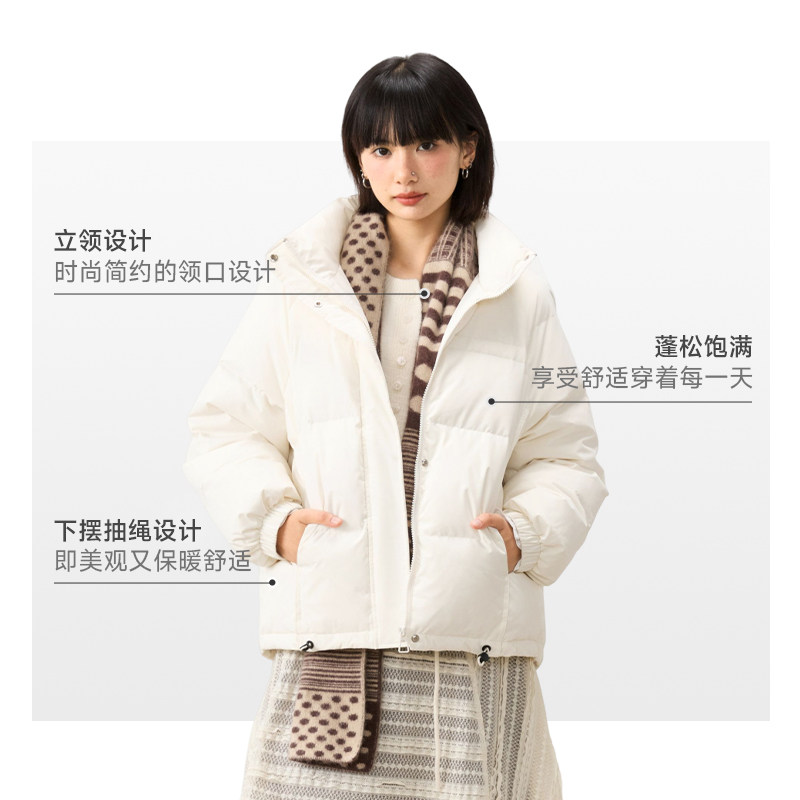 回力白色短款羽绒服女款通勤2026冬季新款小个子防风立领上衣外套