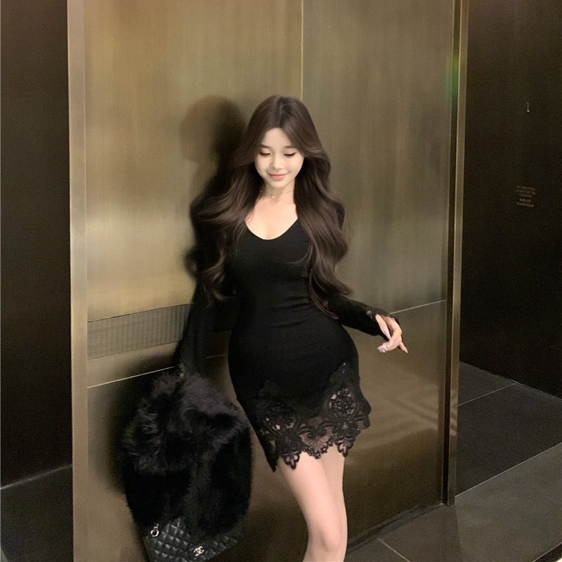 白色蕾丝连衣裙女秋冬内搭纯欲风法式气质修身显瘦打底包臀短裙子