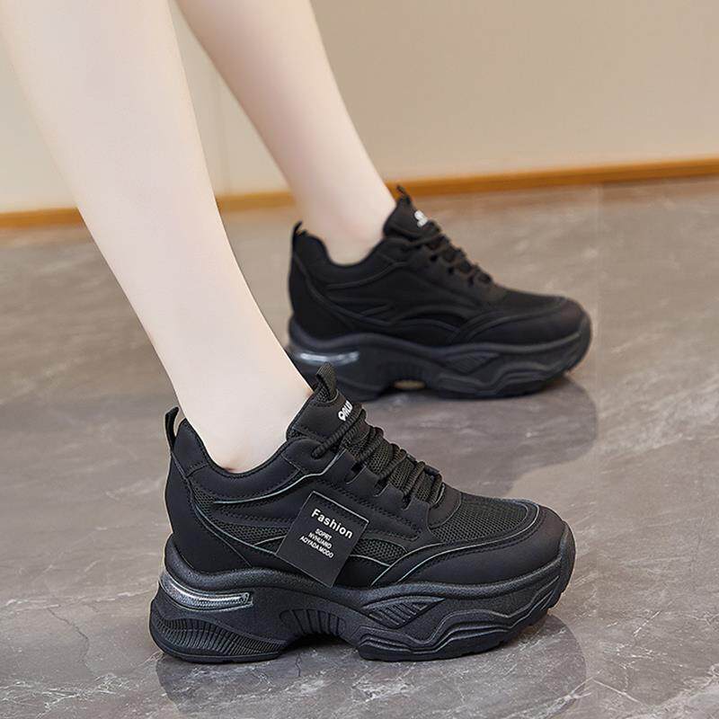 黑色鞋子女2025新款秋季小个子厚底内增高老爹鞋轻便不累脚松糕鞋