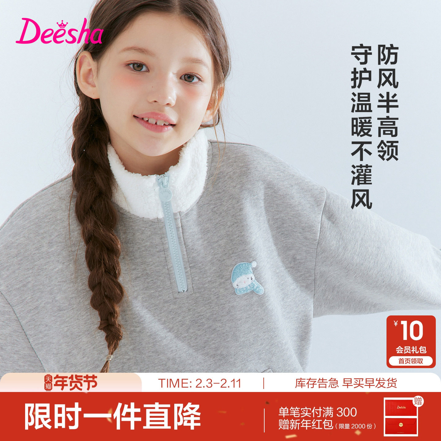 笛莎官方旗舰童装女童加绒卫衣冬季新款大童女孩儿童加厚外套上衣