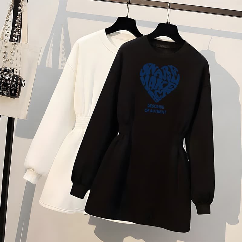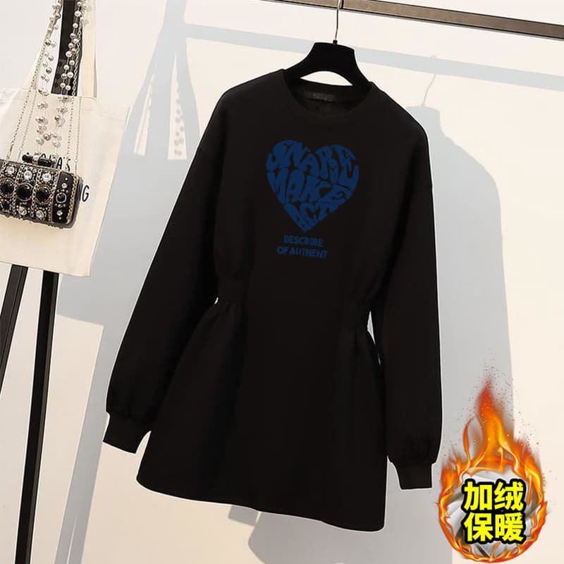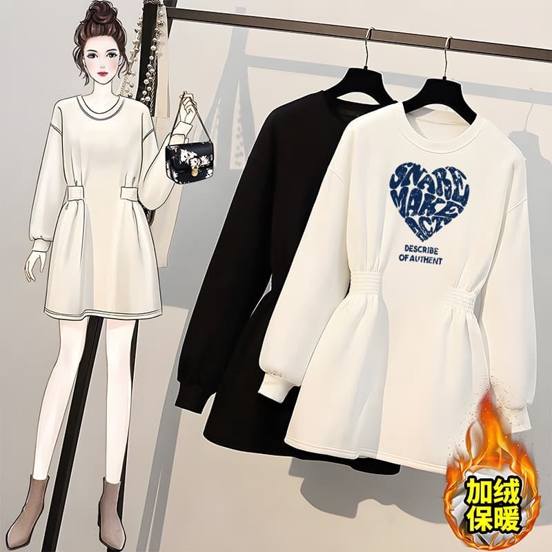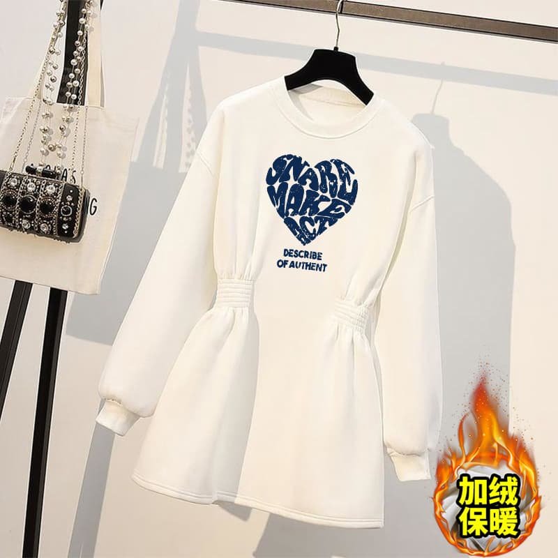 大码收腰卫衣连衣裙女秋冬季胖mm遮肚显瘦加绒加厚白色中长款裙子