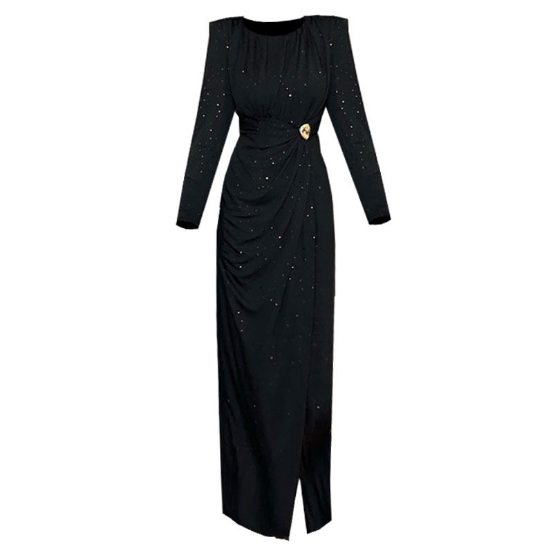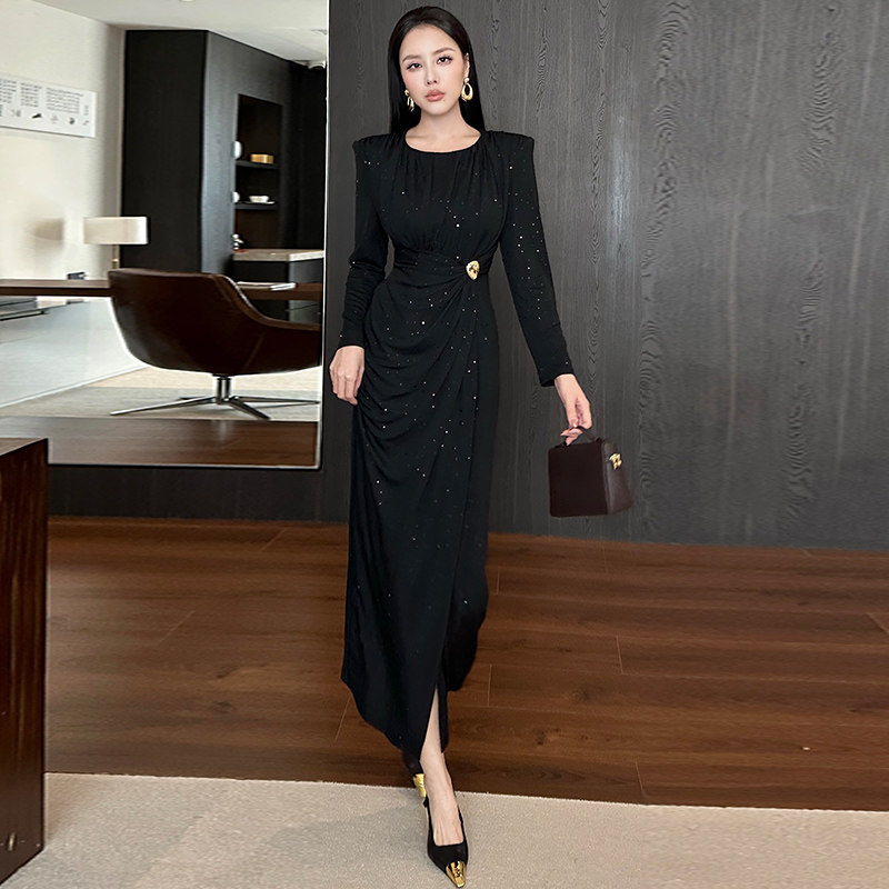 修身显瘦气质收腰包臀性感开叉大方得体绝美连衣裙女秋冬长袖长裙
