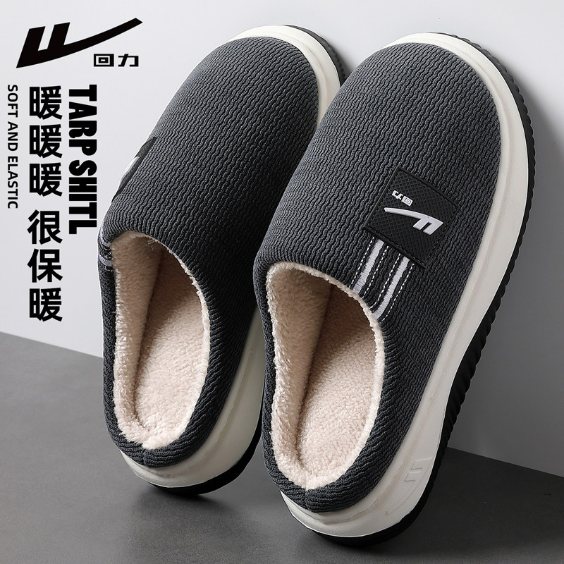 回力防臭棉拖鞋男士冬季2025新款加绒保暖厚底防滑室内家居拖鞋男