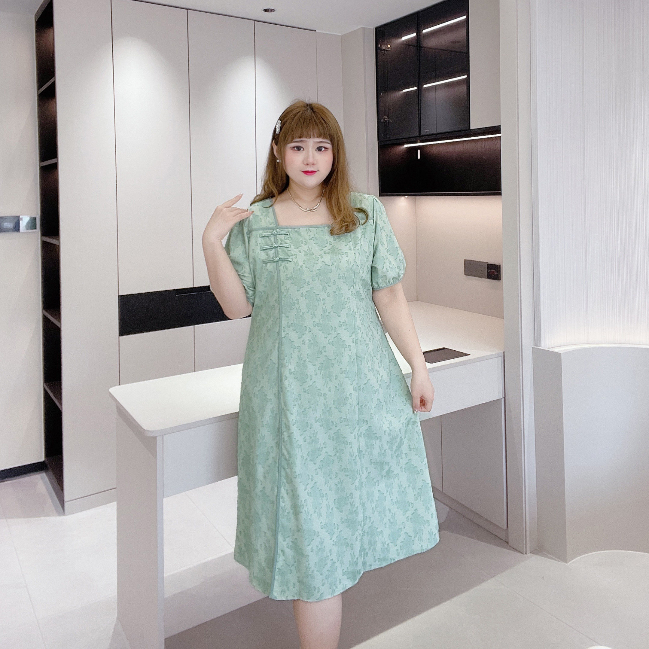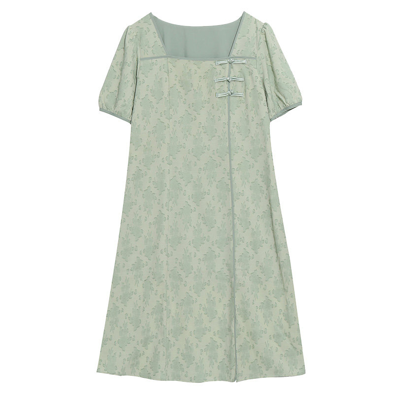肉嘟嘟的胖莹莹大码女装夏款国风改良旗袍盘扣碎花长短款连衣裙