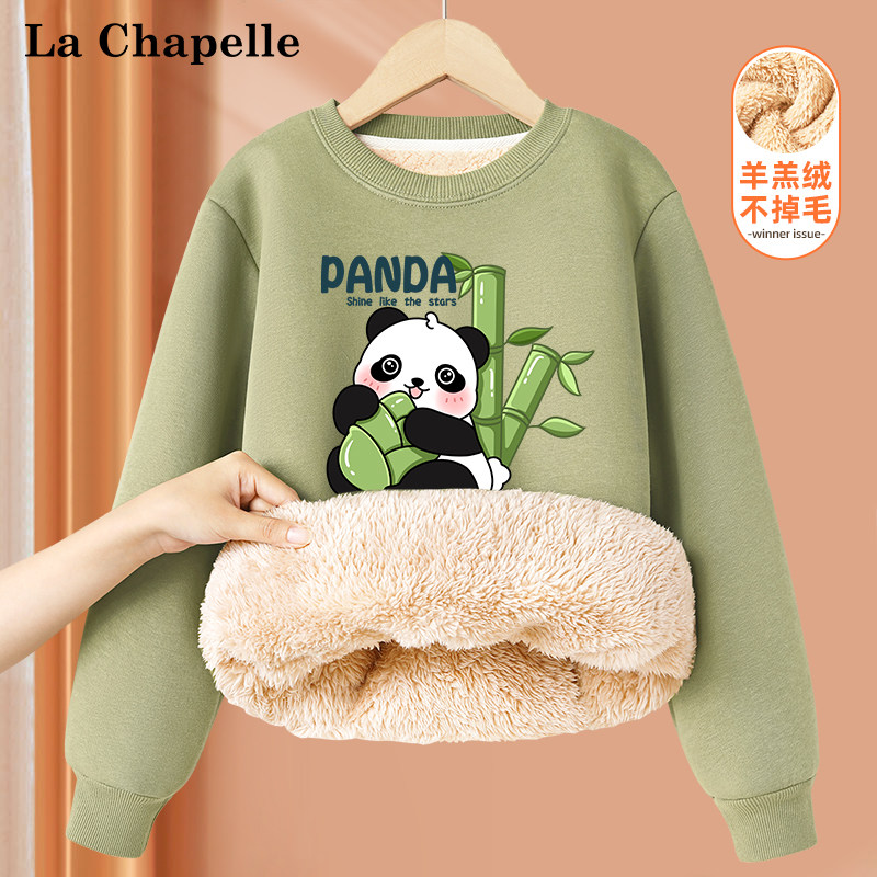 拉夏贝尔儿童加绒卫衣冬季羊羔绒保暖上衣男童冬装加厚打底衫衣服