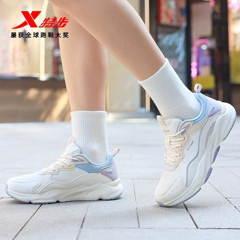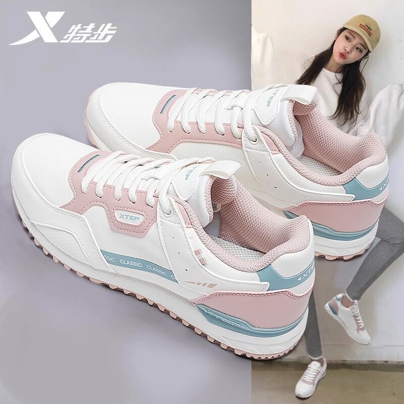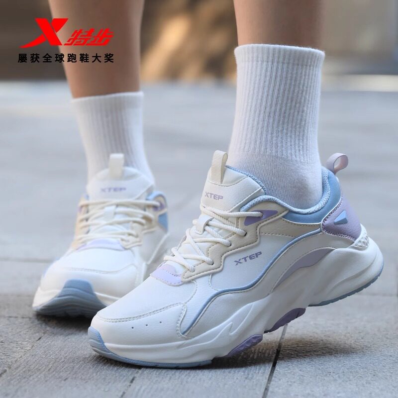 特步运动鞋女款2026新款冬季皮面防水白色休闲鞋子正品轻便跑步鞋