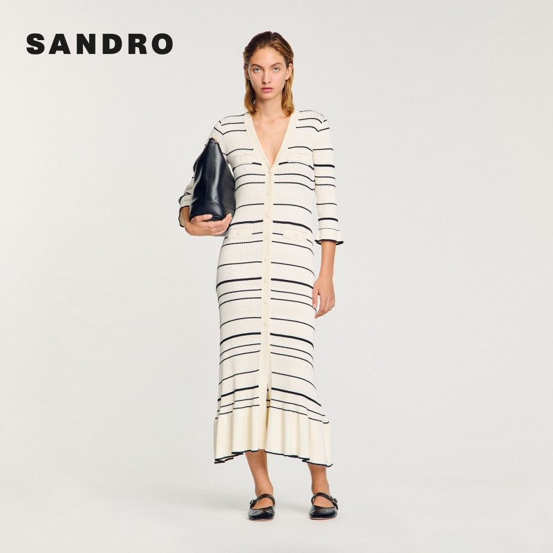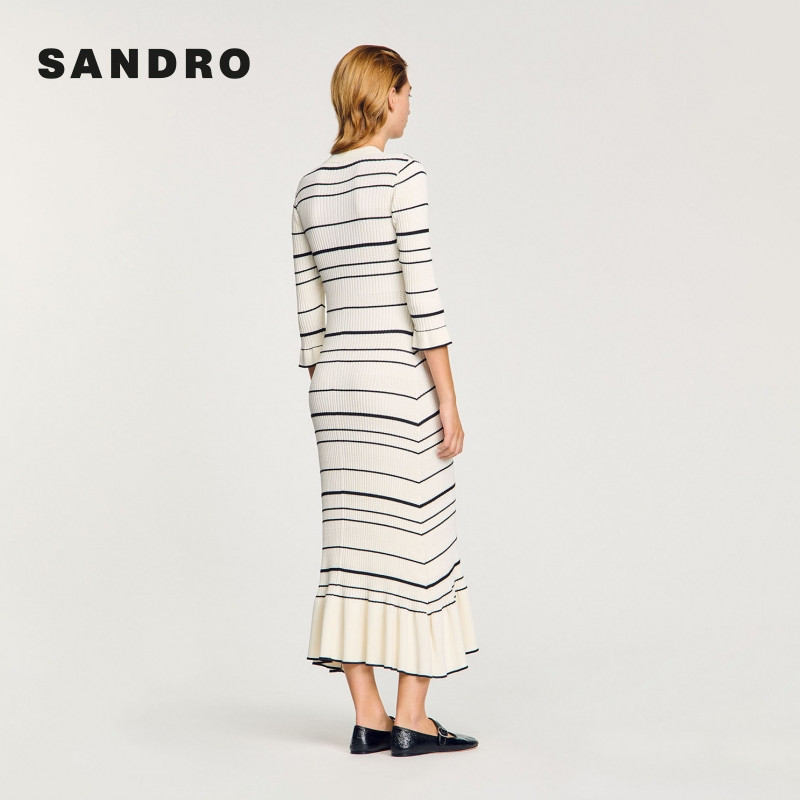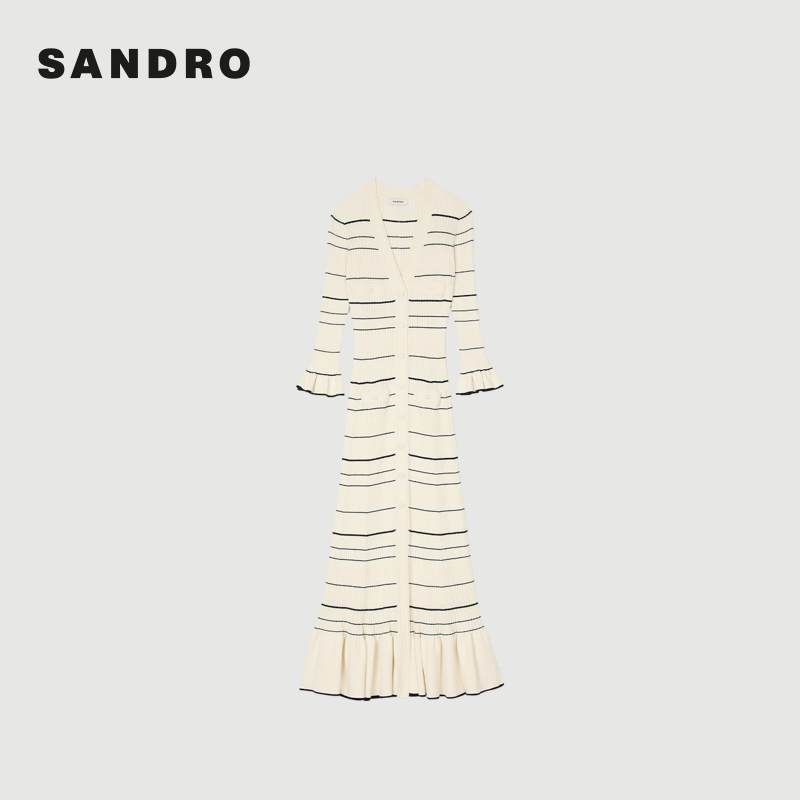 311线报网描述:优雅荷叶边裙摆 撞色条纹图案设计