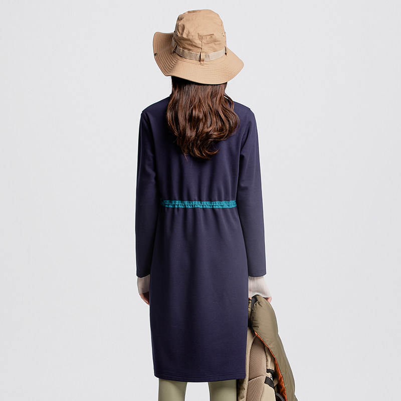 渔牌女装秋冬装女款2024年新款拼接印花抽绳收腰连衣裙子FGGD0027