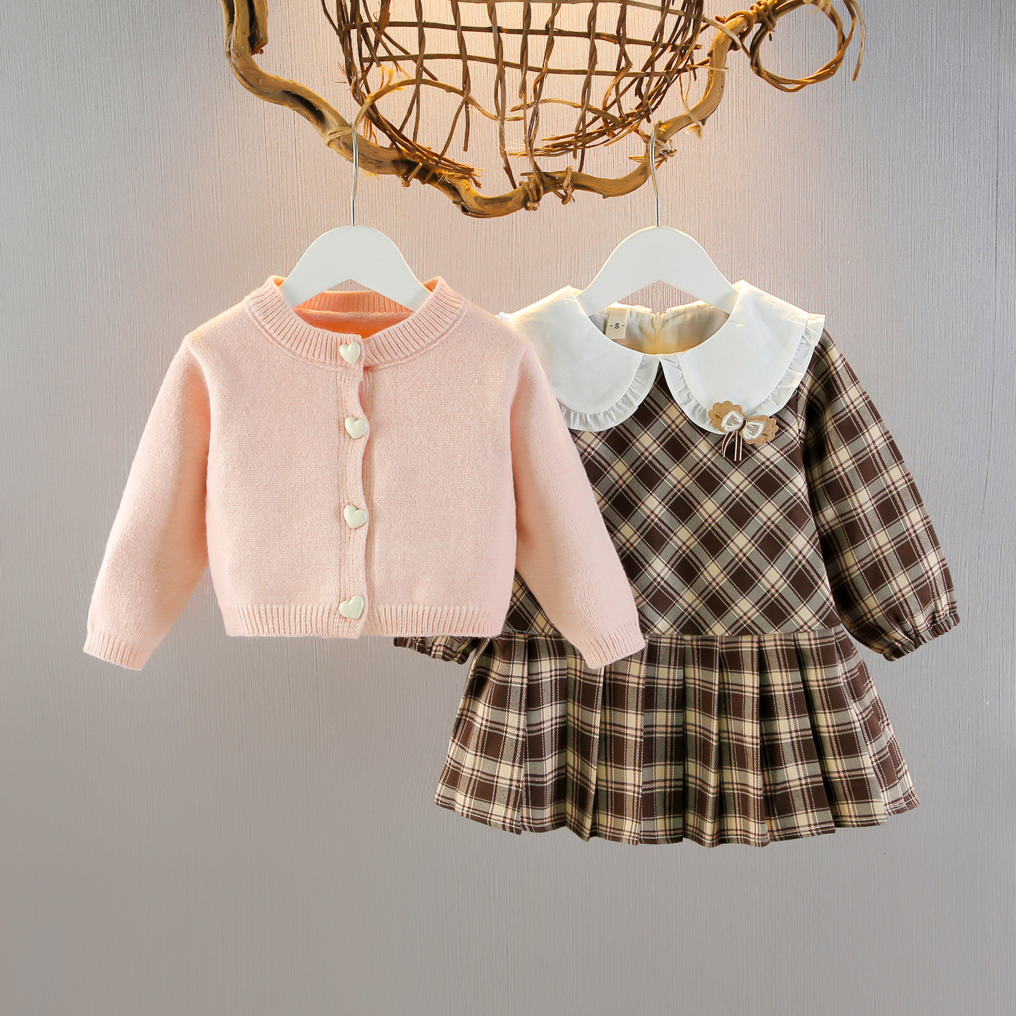 女童连衣裙套装2025新款洋气儿童针织开衫公主裙宝宝秋装礼服秋季