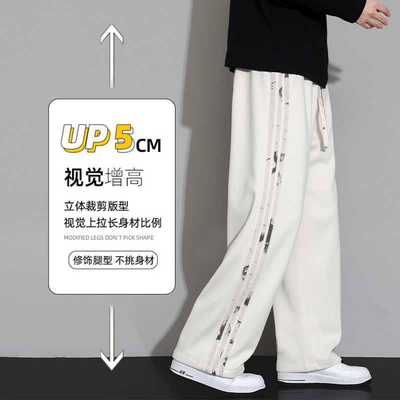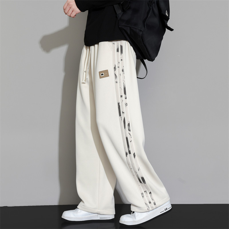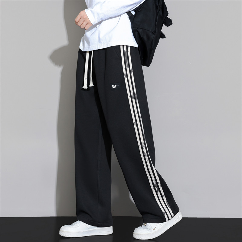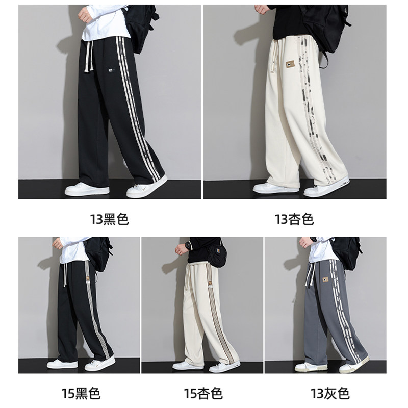 加绒加厚卫裤男士秋冬季宽松直筒裤子男款阔腿运动休闲长裤子垂感