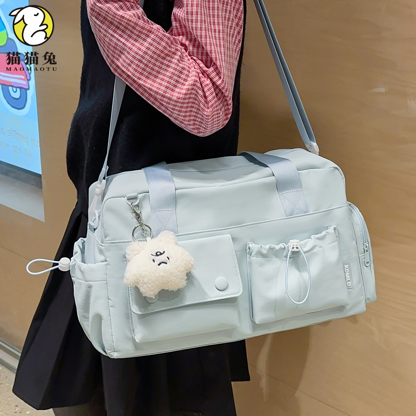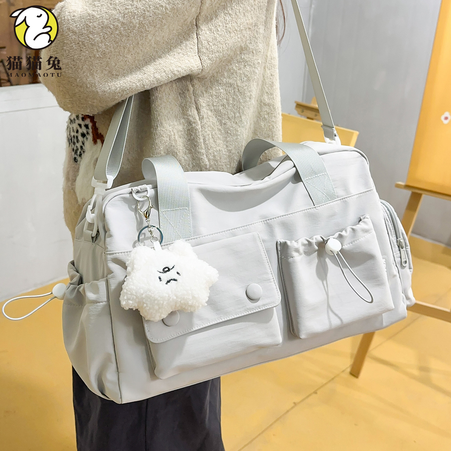 女生健身包粉色轻便旅行包高颜值多口袋斜挎手提包休闲出行收纳包
