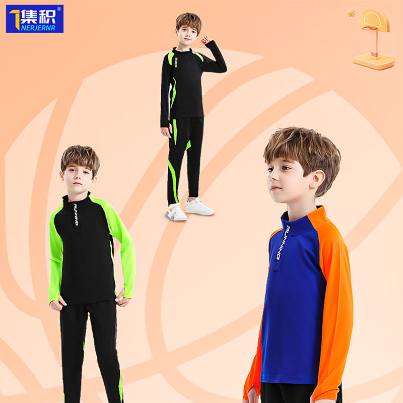 儿童长袖篮球服运动套装男童女孩保暖跑步足球训练服长裤卫衣秋冬