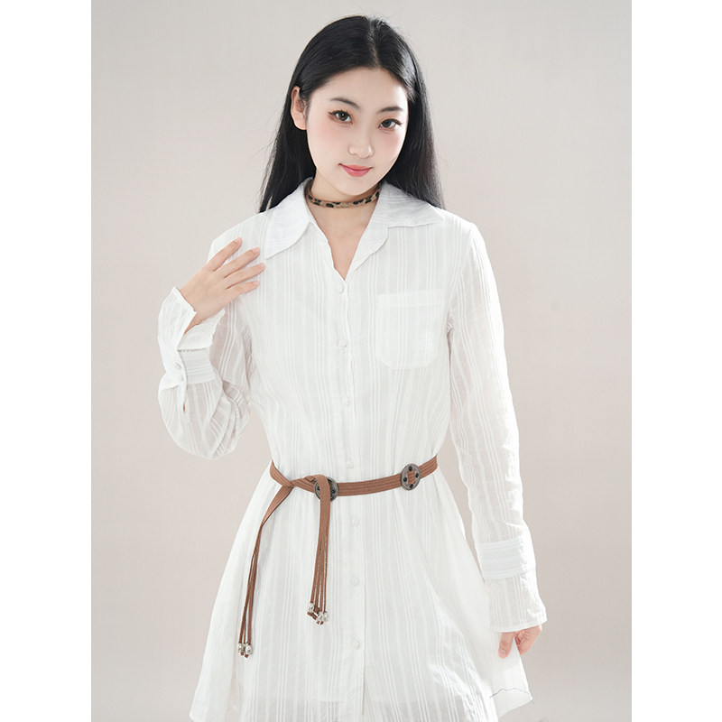 白色长袖衬衫连衣裙女初春法式气质甜美学院风Polo领a字短裙子