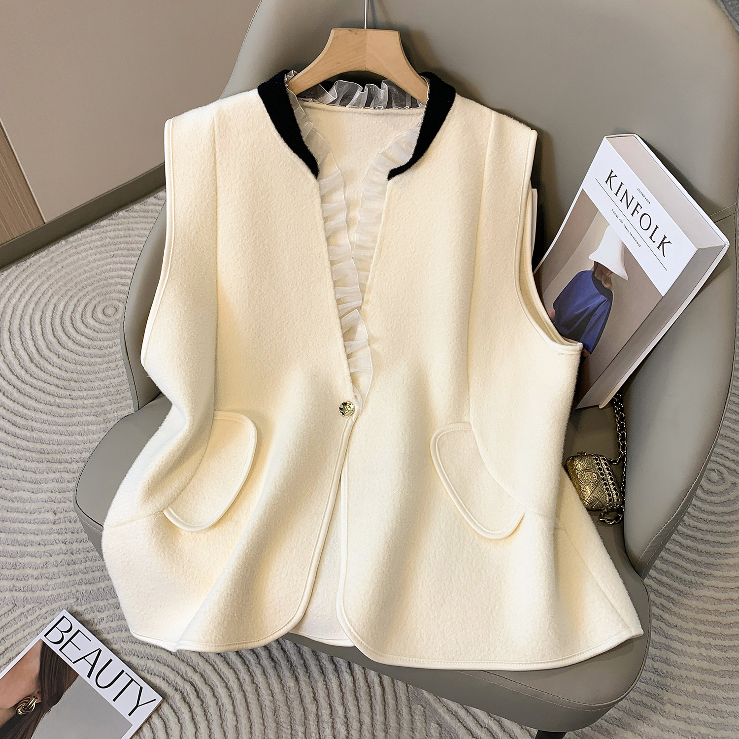 轻奢高级感毛呢马甲外套女款秋冬2025新款大码胖mm小香风春秋上衣
