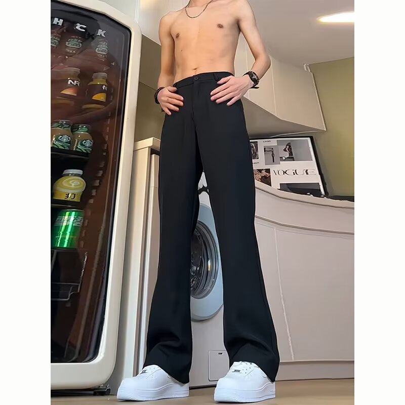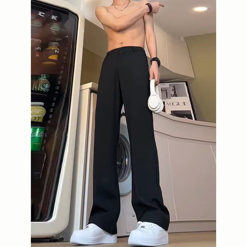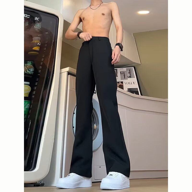 黑色直筒西裤垂坠感高级感弯刀微喇冰丝裤子男款夏季休闲西装裤