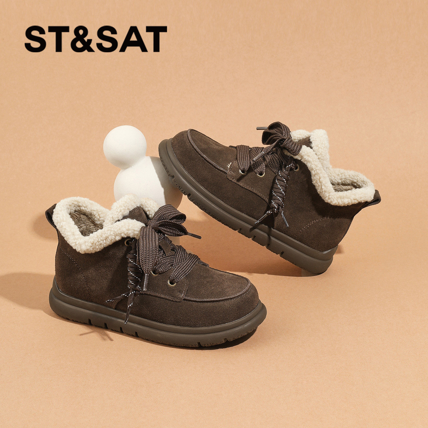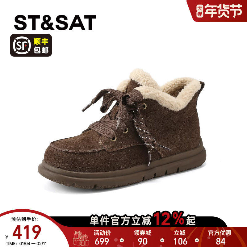 311线报网描述:真皮厚底保暖雪地靴女增高毛毛棉鞋面包鞋子