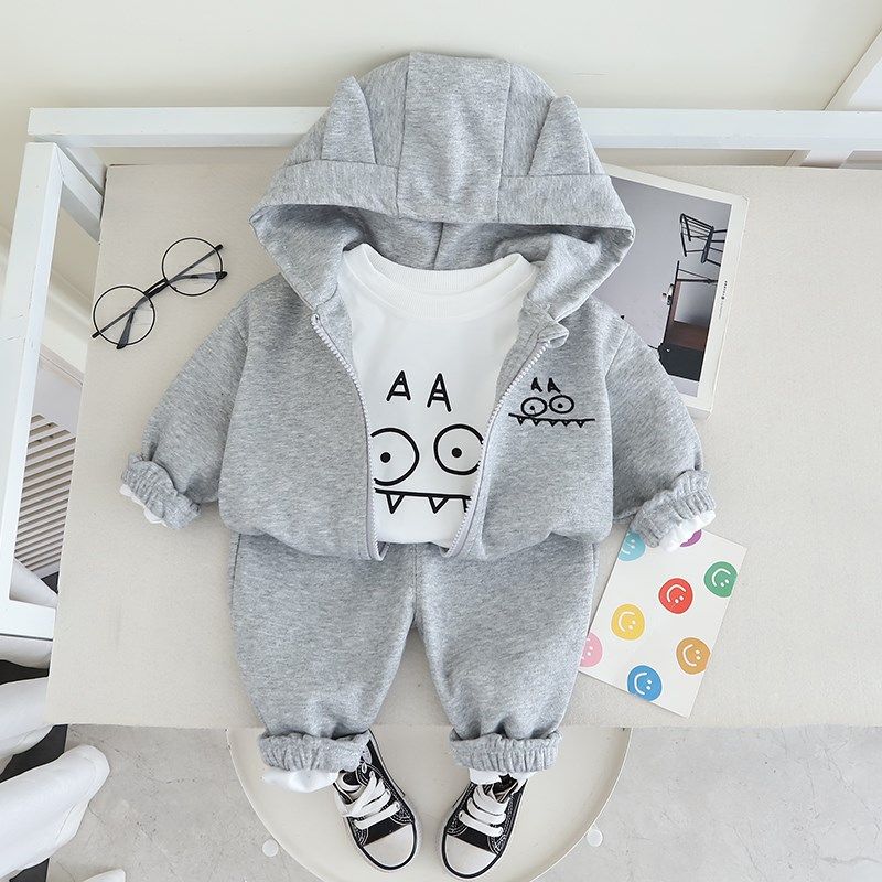 男童春装套装洋气宝宝新款运动休闲三件套春秋季婴儿童开衫衣服潮