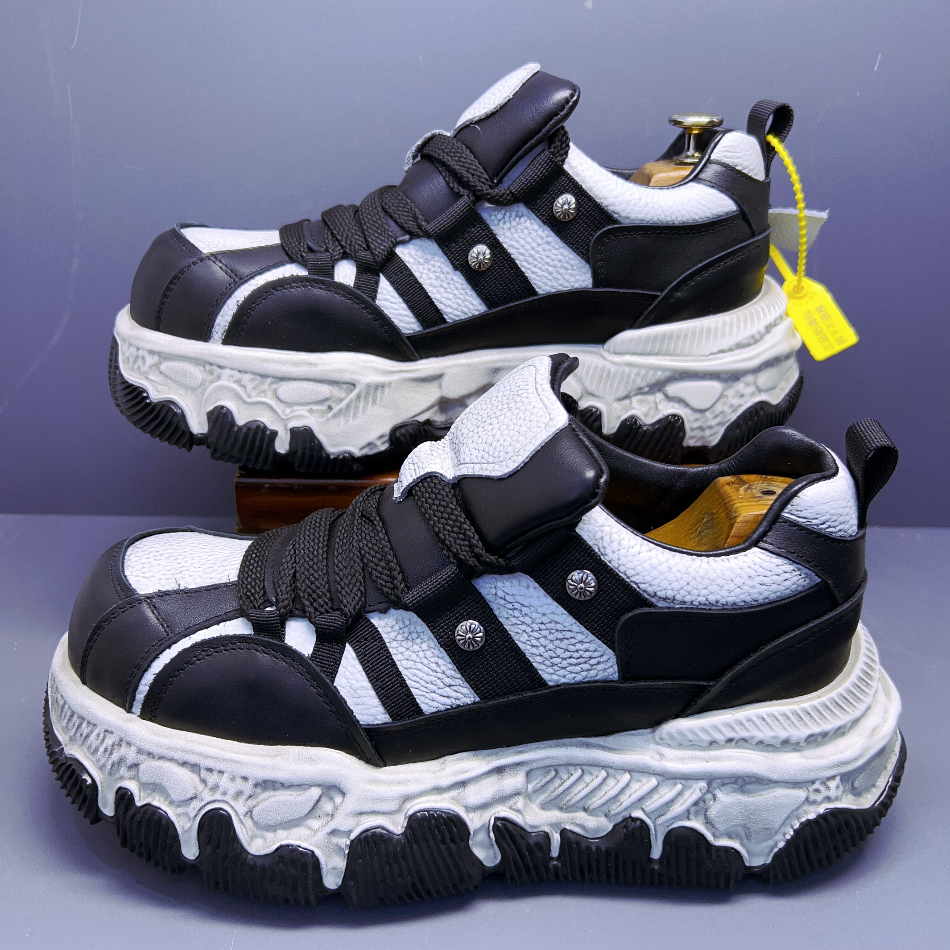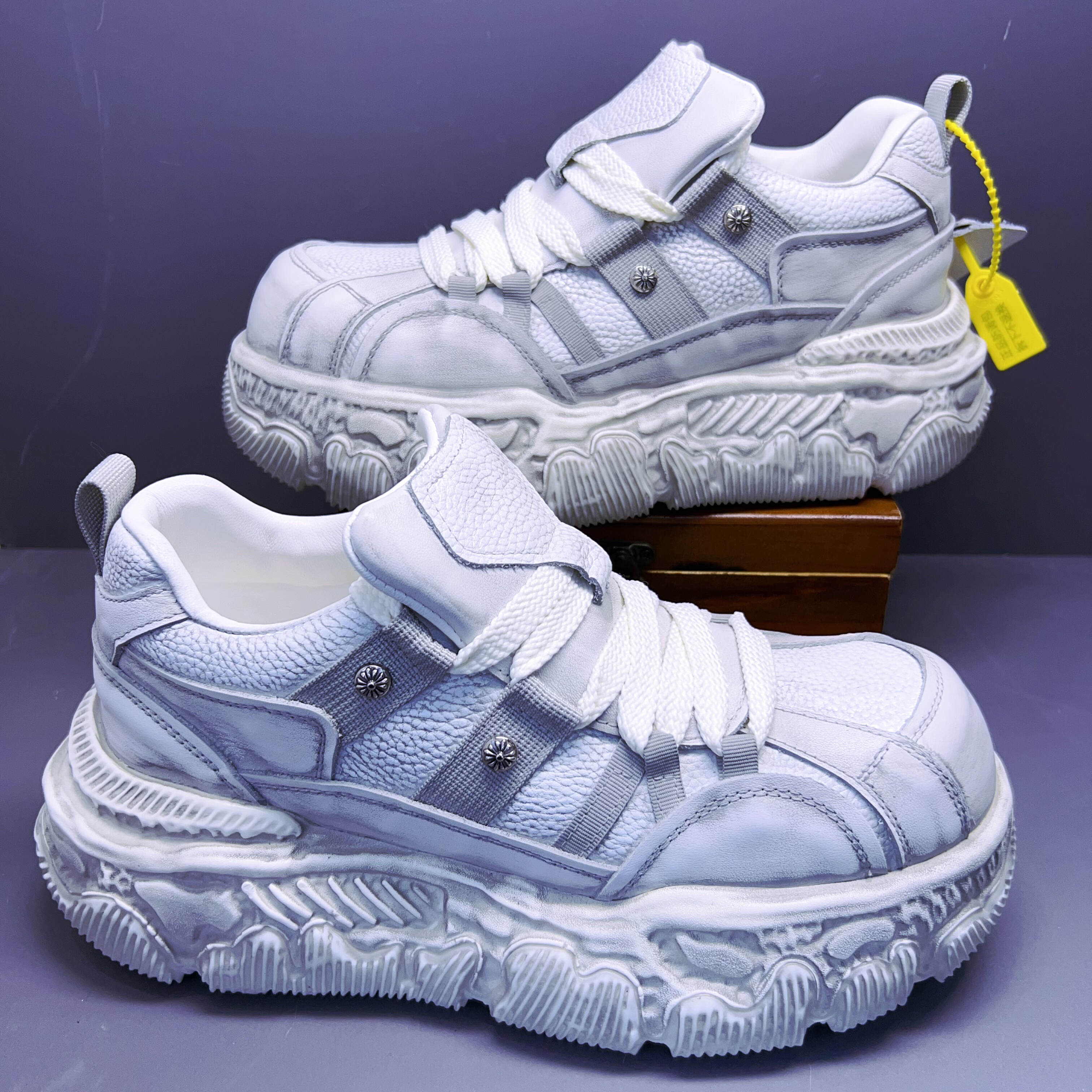 欧货头层牛皮大头面包鞋男厚底松糕鞋百搭增高老爹鞋运动休闲板鞋