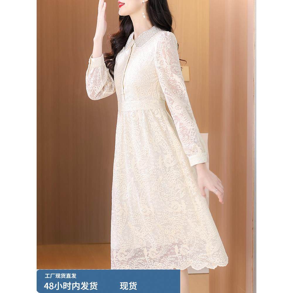 秋冬季蕾丝打底连衣裙女2025新款轻奢高级感冬天配大衣的内搭裙子