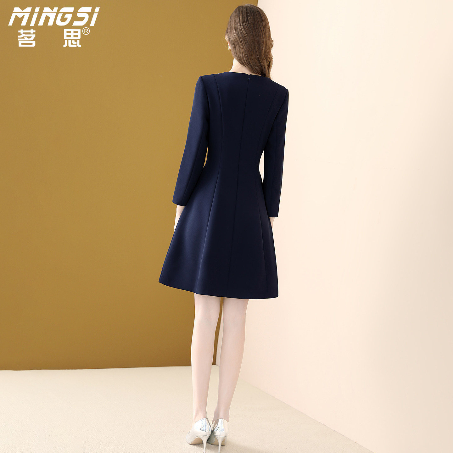 茗思轻奢高级感连衣裙女2026春季新款长袖气质减龄收腰显瘦裙子