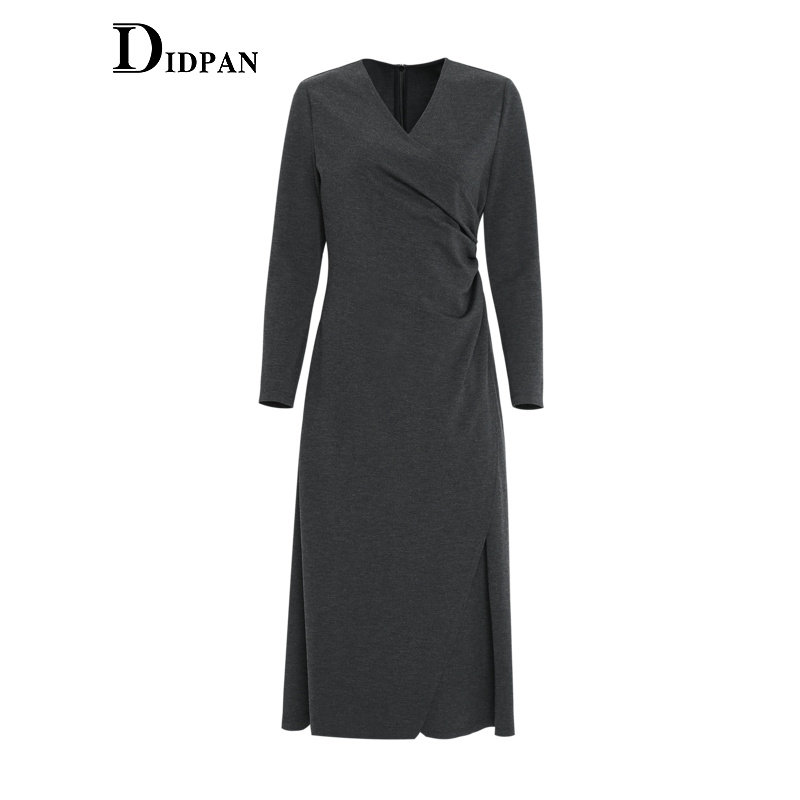 IDPAN长袖连衣裙女春季新款高档轻奢高级感显瘦收腰裙子