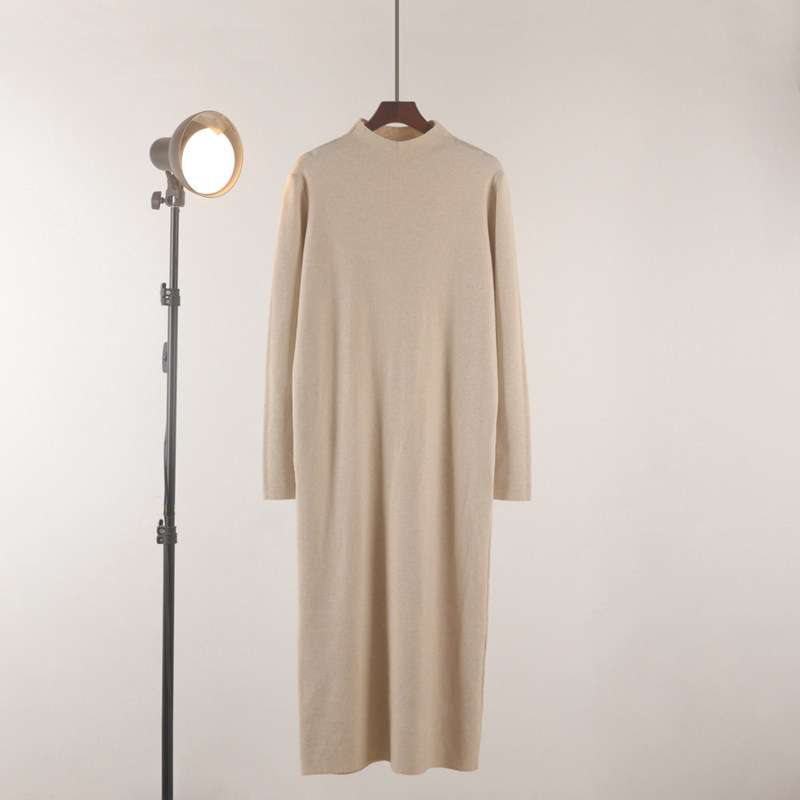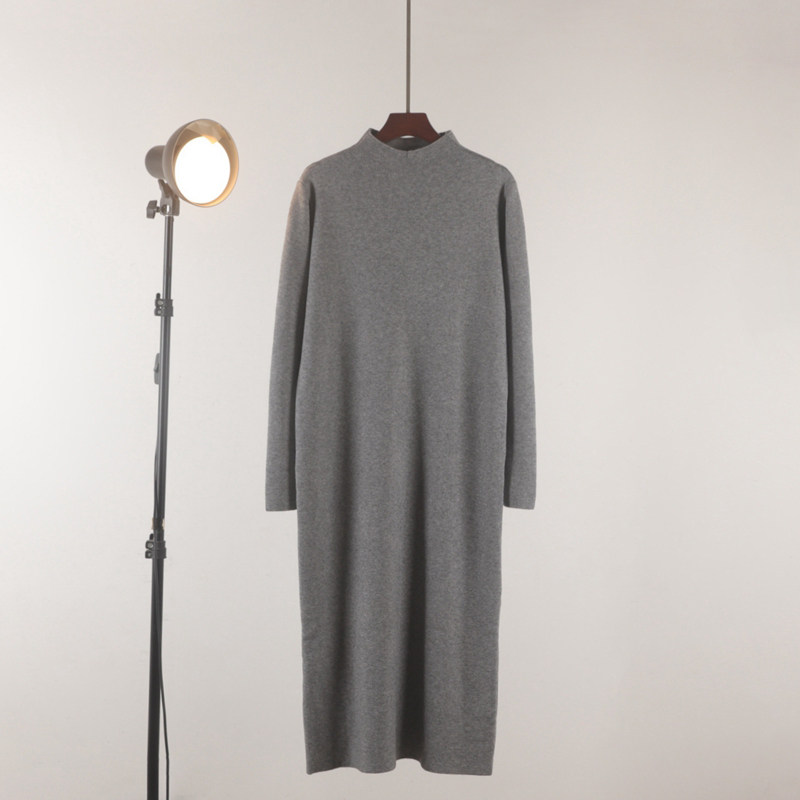 长袖毛衫连衣裙半高领直筒保暖内搭2025秋冬季长款过膝针织毛衣裙